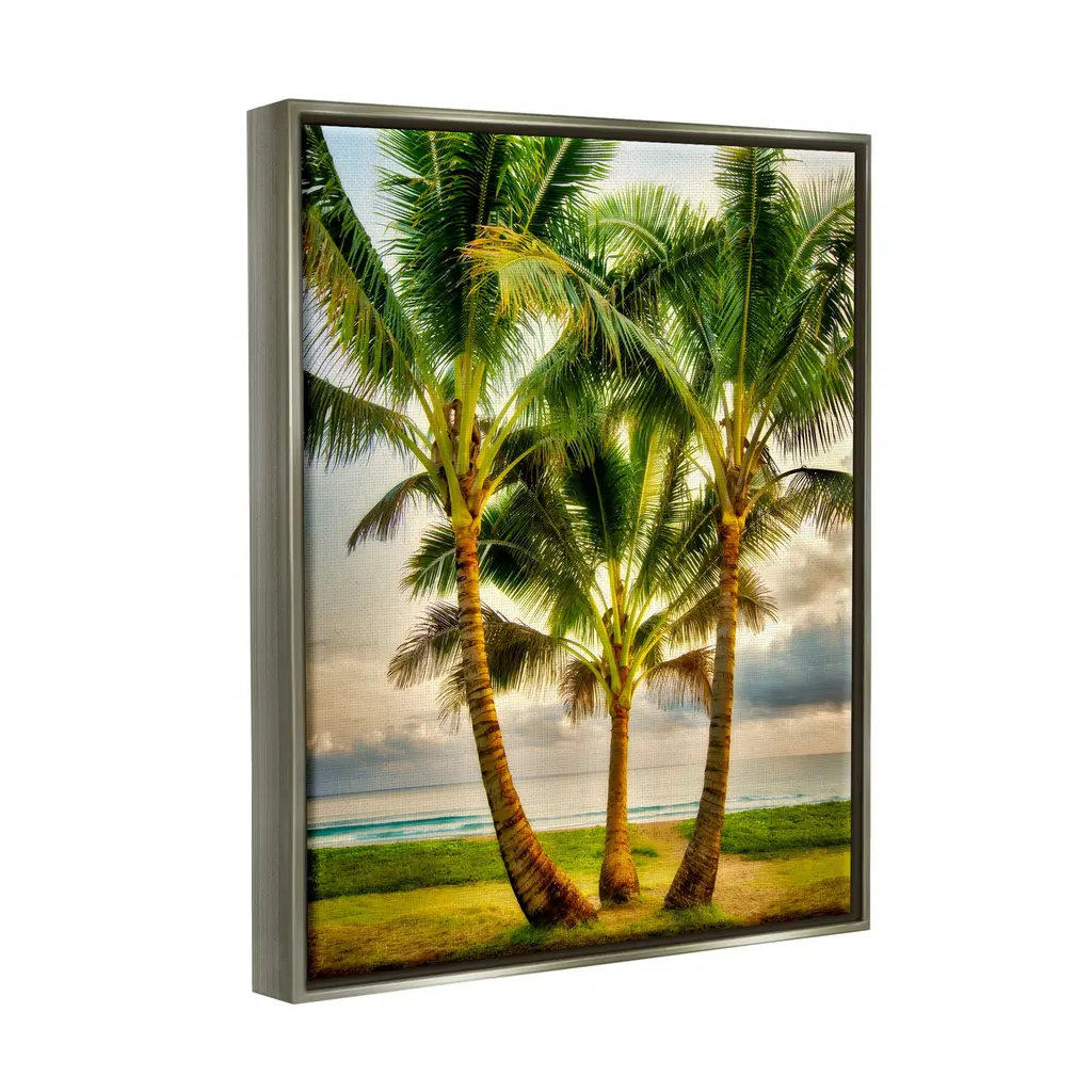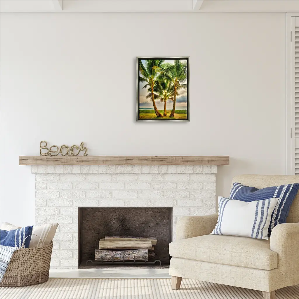 Elevate your home or office to the next level with Stupell Framed Floating Canvas Wall Art. Our premium hand-stretched canvas is mounted securely into a sturdy lightweight frame. The museum-style gap between the wrapped canvas and the box frame gives the illusion of floating artwork. Stupell Wall Art is made in the USA.Features: Dimensions: 17 x 1.7 x 21 Frame, 16 x 1.5 x 20 Canvas ArtFloating Frame Sizes Include Standard: 17 x 1.7 x 21 Oversized: 25 x 1.7 x 31Wall Art is Ready to Hang with Hardware Free Hanging. No installation required. For Easy Set Up Lean or Layer Artwork on Shelf or Against Wall.Our elevated 1.7" Thick Floating Frame is the perfect complement to our canvas style Wall Art. We use only the highest quality inks in house with industry leading printing solutions. Canvas is hand stretched over a durable wood foundation and then mounted securly into a Modern Box Frame. Made in the USA.Artwork Relates To: Summer, Plant, Palm Tree, Nature, Scenery, Tropical, Sky, Landscape, Beach, ShoreDesign by Dennis Frates