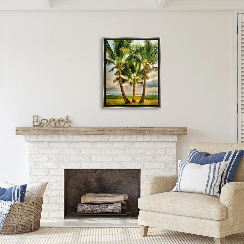 Elevate your home or office to the next level with Stupell Framed Floating Canvas Wall Art. Our premium hand-stretched canvas is mounted securely into a sturdy lightweight frame. The museum-style gap between the wrapped canvas and the box frame gives the illusion of floating artwork. Stupell Wall Art is made in the USA.Features: Dimensions: 17 x 1.7 x 21 Frame, 16 x 1.5 x 20 Canvas ArtFloating Frame Sizes Include Standard: 17 x 1.7 x 21 Oversized: 25 x 1.7 x 31Wall Art is Ready to Hang with Hardware Free Hanging. No installation required. For Easy Set Up Lean or Layer Artwork on Shelf or Against Wall.Our elevated 1.7" Thick Floating Frame is the perfect complement to our canvas style Wall Art. We use only the highest quality inks in house with industry leading printing solutions. Canvas is hand stretched over a durable wood foundation and then mounted securly into a Modern Box Frame. Made in the USA.Artwork Relates To: Summer, Plant, Palm Tree, Nature, Scenery, Tropical, Sky, Landscape, Beach, ShoreDesign by Dennis Frates