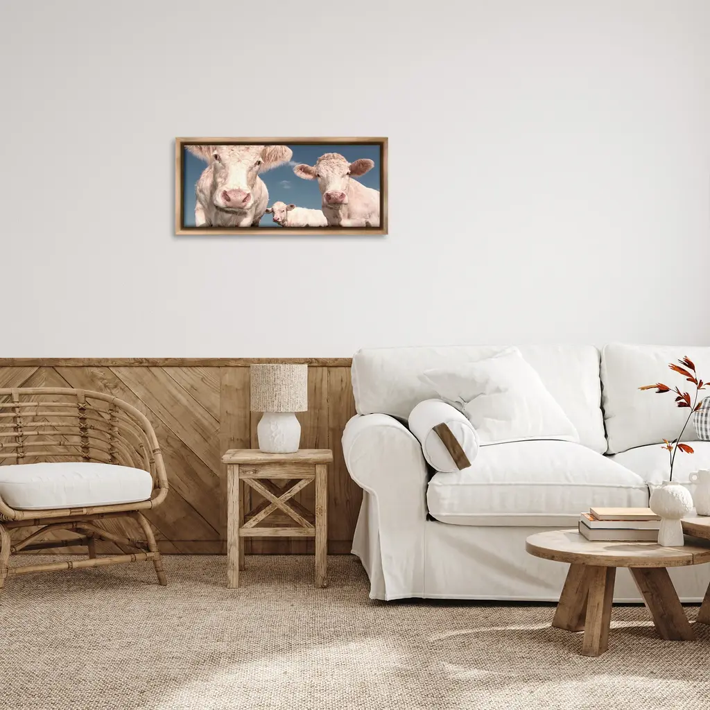 Elevate your home or office to the next level with Stupell Framed Floating Canvas Wall Art. Our premium hand-stretched canvas is mounted securely into a sturdy lightweight frame. The museum-style gap between the wrapped canvas and the box frame gives the illusion of floating artwork. Stupell Wall Art is made in the USA.Features: Dimensions: 25 x 1.7 x 11 Frame, 24 x 1.5 x 10 Canvas ArtFloating Frame Canvas Products are available in sizes 25"x11" and 31"x14". All Floating Frame Canvas Products have a 1.7" Depth.Wall Art is Ready to Hang with Hardware Free Hanging. No Installation required. For Easy Set Up Lean or Layer Artwork on Shelf or Against Wall. Artwork is Permently Fixed into the Frame.Our elevated 1.7" Thick Floating Frame is the perfect complement to our canvas style Wall Art. We use only the highest quality inks in house with industry leading printing solutions. Canvas is hand stretched over a durable wood foundation and then mounted securly into a Modern Box Frame. Made in the USA.Artwork Relates To: Animal, Cattle, Cow, Mammal, CalfDesign by Marcus Prime