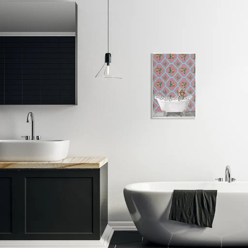 Our wall plaques start as high-quality lithograph prints mounted on durable 0.5-inch thick MDF wood. Each piece is hand finished and comes with a fresh layer of white foil on the sides to give it a crisp, clean look. Plaques arrive ready to hang without installation and come with removable plastic corners to keep them from damage in transit. Stupell Wall Art is made in the USA.Features: Dimensions: 10 x 0.5 x 15 InchesWall Plaque Sizes Include Standard: 10 x 0.5 x 15 Oversized: 13 x 0.5 x 19Wall Art is Ready to Hang with Hardware Free Hanging. No installation required. For Easy Set Up Lean or Layer Artwork on Shelf or Against Wall.All of our wall plaques start off as high quality lithograph prints that are then mounted on durable 0.5 inch thick MDF wood. Each piece is hand finished and comes with a fresh layer of foil on the sides to give it a crisp clean look. Made In USA.Artwork Relates To: Bathing, Bathtub, Tub, Pattern, Bathroom, Bubbles, Floral, Citrus, Trellis, TigerDesign by Amelia Noyes