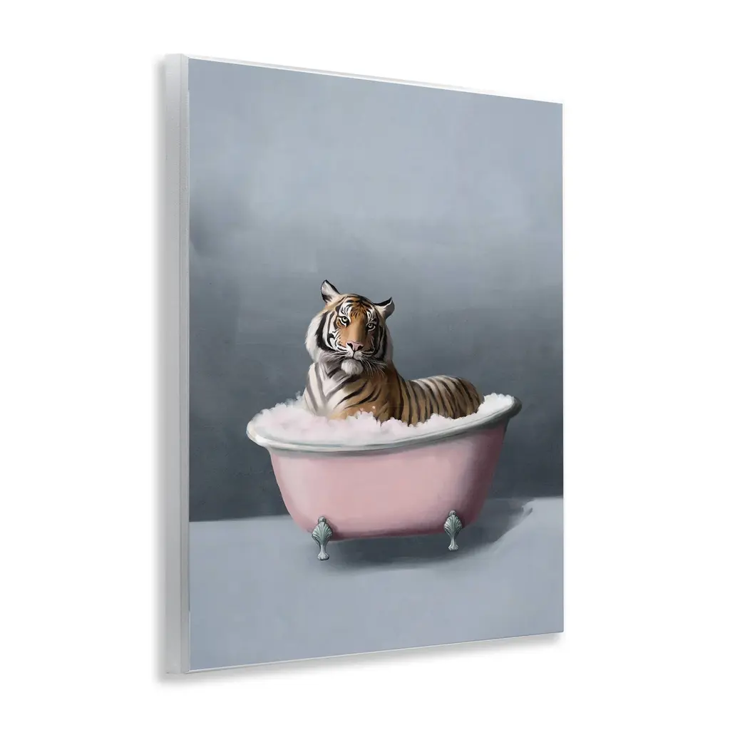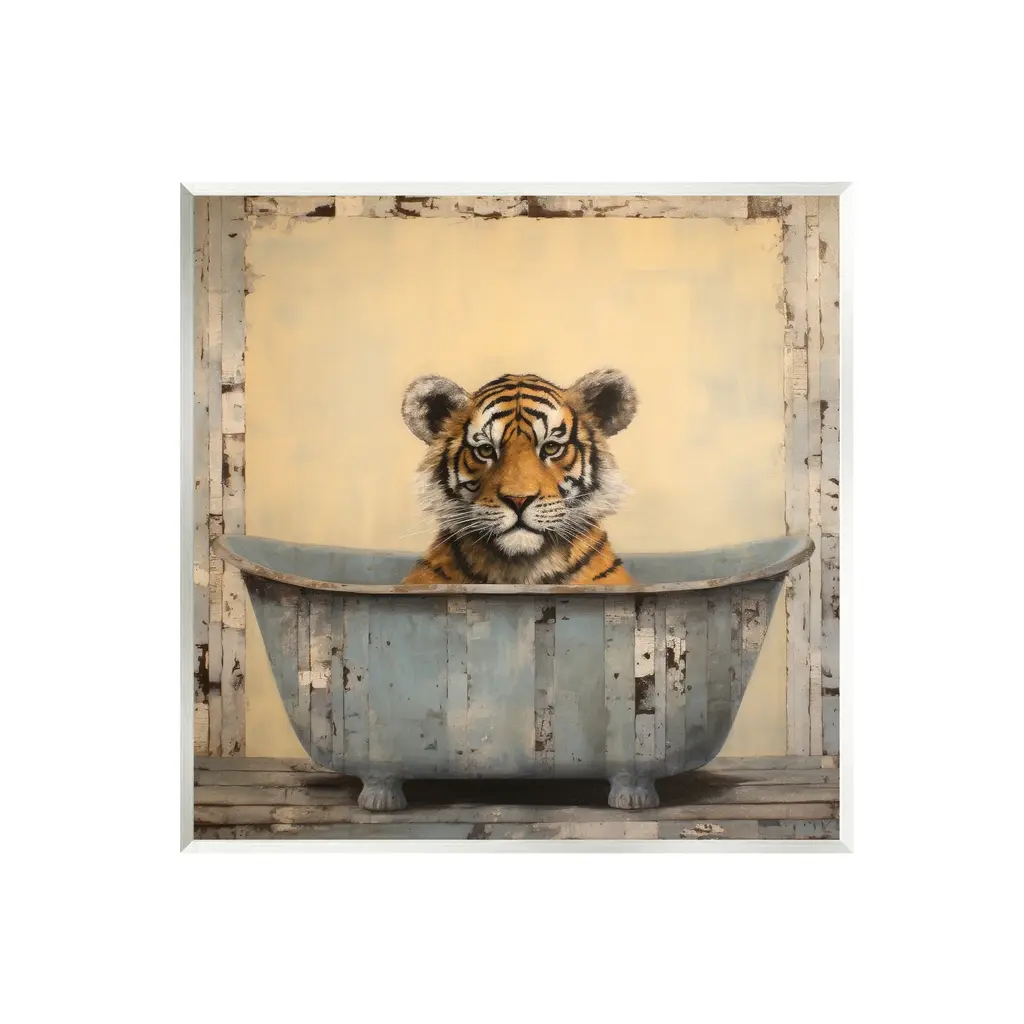 Our wall plaques start as high-quality lithograph prints mounted on durable 0.5-inch thick MDF wood. Each piece is hand finished and comes with a fresh layer of white foil on the sides to give it a crisp, clean look. Plaques arrive ready to hang without installation and come with removable plastic corners to keep them from damage in transit. Stupell Wall Art is made in the USA.Features: Dimensions: 11 x 0.5 x 14 InchesWall Art is Ready to Hang with Hardware Free Hanging. No installation required. For Easy Set Up Lean or Layer Artwork on Shelf or Against Wall.All of our wall plaques start off as high quality lithograph prints that are then mounted on durable 0.5 inch thick MDF wood. Each piece is hand finished and comes with a fresh layer of foil on the sides to give it a crisp clean look. Made In USA.Artwork Relates To: Bathroom, Bath, Tub, Animal, Wildlife, TigerDesign by Svetlana Aleynikova