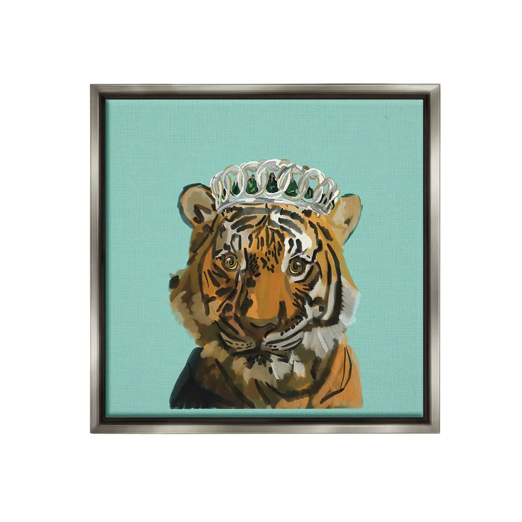 Elevate your home or office to the next level with Stupell Framed Floating Canvas Wall Art. Our premium hand-stretched canvas is mounted securely into a sturdy lightweight frame. The museum-style gap between the wrapped canvas and the box frame gives the illusion of floating artwork. Stupell Wall Art is made in the USA.Features: Dimensions: 18 x 1.7 x 18 Frame, 17 x 1.5 x 17 Canvas ArtFloating Frame Canvas Products are available in sizes 18"x18" and 25"x25". All Floating Frame Canvas Products have a 1.7" Depth.Wall Art is Ready to Hang with Hardware Free Hanging. No Installation required. For Easy Set Up Lean or Layer Artwork on Shelf or Against Wall. Artwork is Permently Fixed into the Frame.Our elevated 1.7" Thick Floating Frame is the perfect complement to our canvas style Wall Art. We use only the highest quality inks in house with industry leading printing solutions. Canvas is hand stretched over a durable wood foundation and then mounted securly into a Modern Box Frame. Made in the USA.Artwork Relates To: Animal, Mammal, Tiger, Wildlife, Crown, TiaraDesign by Amelia Noyes