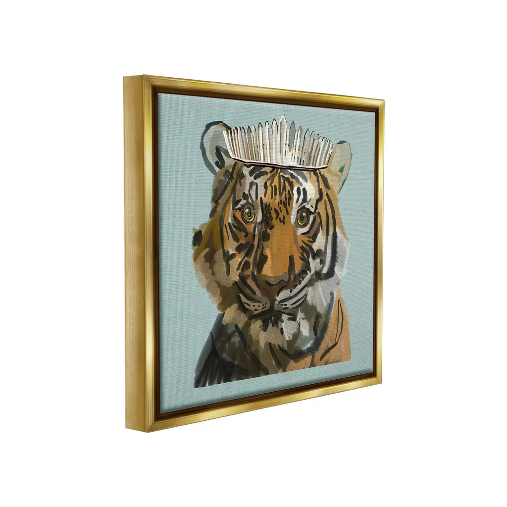 Stupell Tiger In Tiara Portrait Framed Floater Canvas Wall Art Design By Amelia Noyes - 25 X 25 - Gold