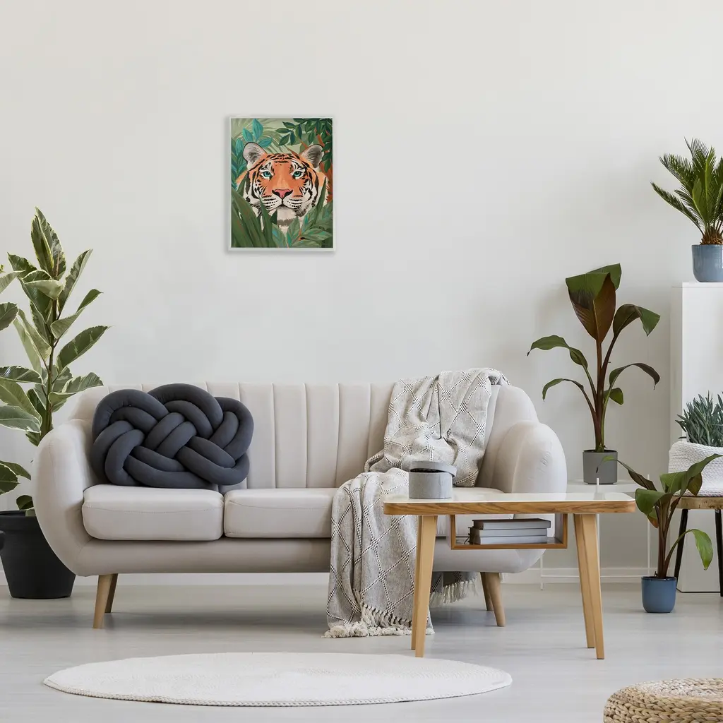 Add dimension to any room with our textured Framed Giclee Artwork. Our framed artwork is securely mounted into a 1.5-inch thick wood grain frame and ready to hang. Frames are available in three alluring styles: black, gray farmhouse and white. In addition, you should check out our oversized options if you want a statement piece. Stupell Wall Art is made in the USA.Features: Dimensions: 11 x 1.5 x 14 FramedFramed Giclee Products are available in the sizes 11"x14", 16"x20" or 24"x30". All Framed Giclee Products have a 1.5" Depth. Wall Art is Ready to Hang with Hardware Free Hanging. No installation required. For Easy Set Up Lean or Layer Artwork on Shelf or Against Wall.Our giclée prints are carefully mounted on a durable MDF backing, and then perfectly finished in a 1.5 inch thick woodgrain frame. Mounted frame colors include black, gray farmhouse and white. Made In USA.Artwork Relates To: Plant, Jungle, Nature, Animal, Mammal, Tiger, Wildlife, Rainforest, LeafDesign by Cat Thurman Designs