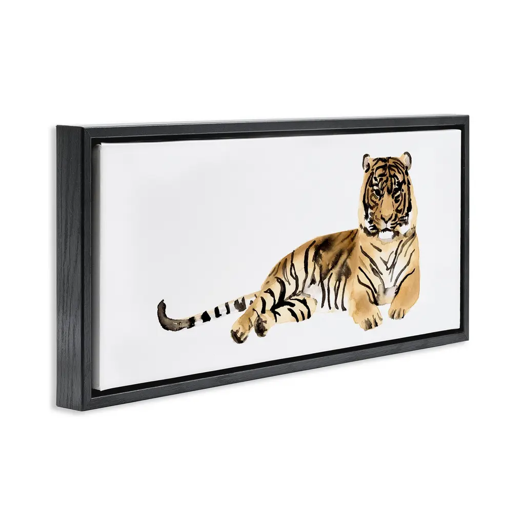 Stupell Tiger Resting Orange Ink Watercolor Framed Floater Canvas Wall Art Design By Victoria Borges - 25 X 11 - Black