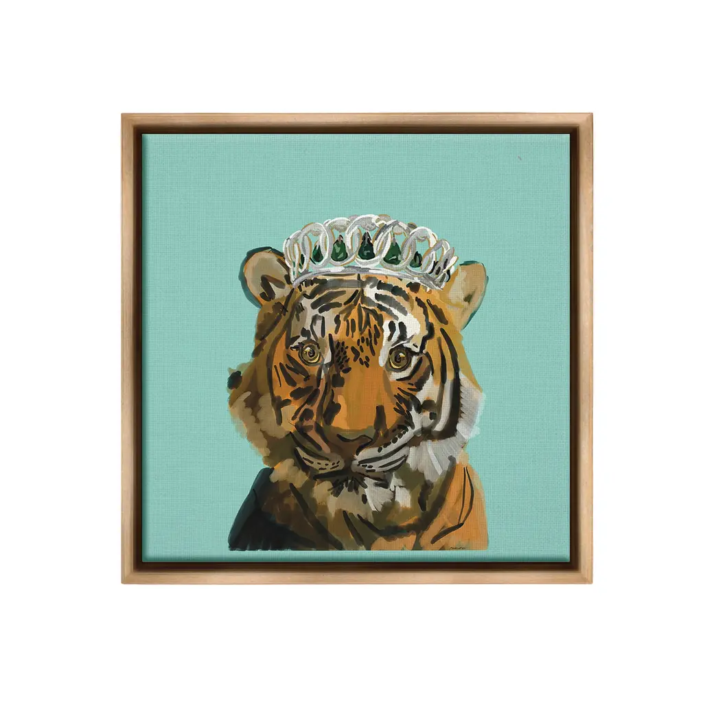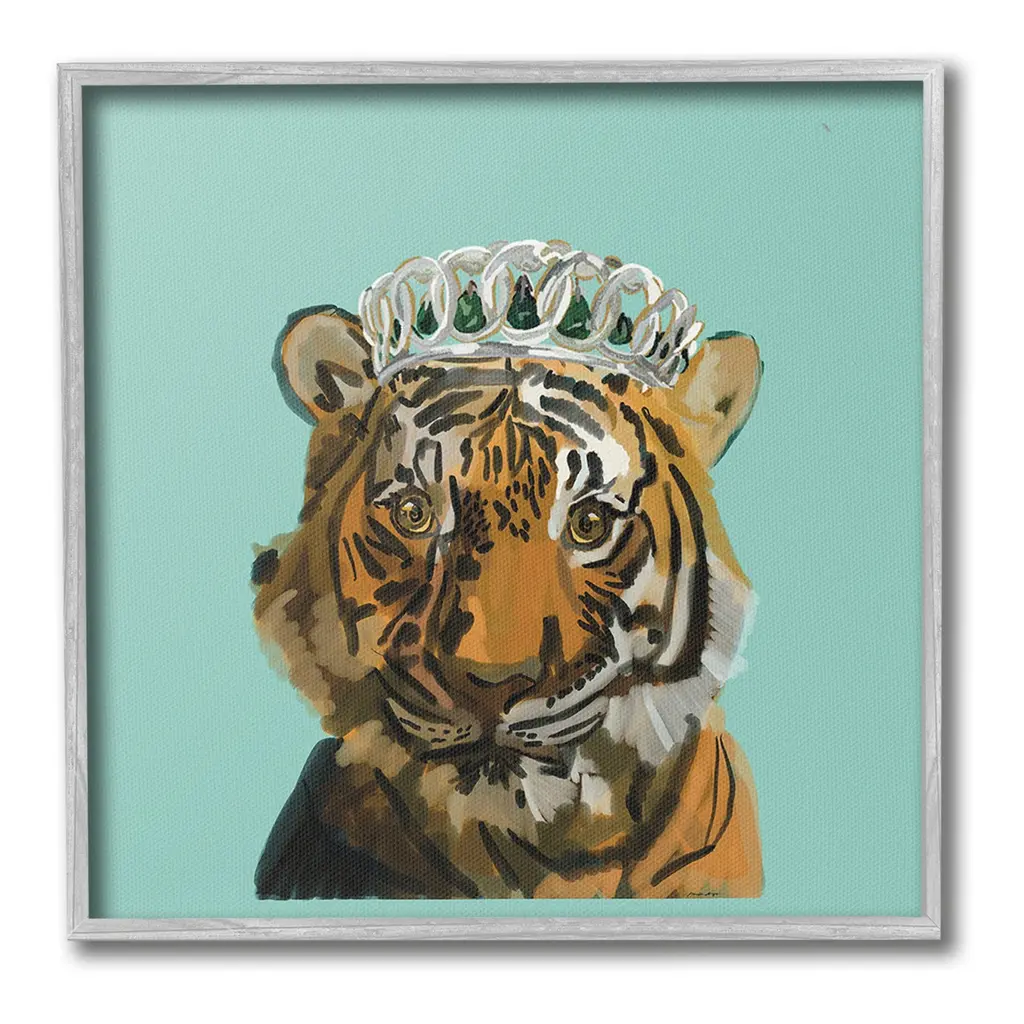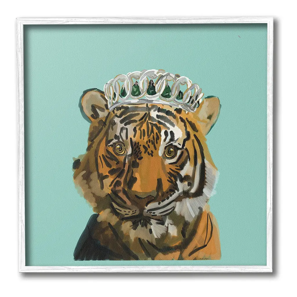 Elevate your home or office to the next level with Stupell Framed Floating Canvas Wall Art. Our premium hand-stretched canvas is mounted securely into a sturdy lightweight frame. The museum-style gap between the wrapped canvas and the box frame gives the illusion of floating artwork. Stupell Wall Art is made in the USA.Features: Dimensions: 18 x 1.7 x 18 Frame, 17 x 1.5 x 17 Canvas ArtFloating Frame Canvas Products are available in sizes 18"x18" and 25"x25". All Floating Frame Canvas Products have a 1.7" Depth.Wall Art is Ready to Hang with Hardware Free Hanging. No Installation required. For Easy Set Up Lean or Layer Artwork on Shelf or Against Wall. Artwork is Permently Fixed into the Frame.Our elevated 1.7" Thick Floating Frame is the perfect complement to our canvas style Wall Art. We use only the highest quality inks in house with industry leading printing solutions. Canvas is hand stretched over a durable wood foundation and then mounted securly into a Modern Box Frame. Made in the USA.Artwork Relates To: Accessories, Animal, Mammal, Tiger, Wildlife, Tiara, CrownDesign by Amelia Noyes