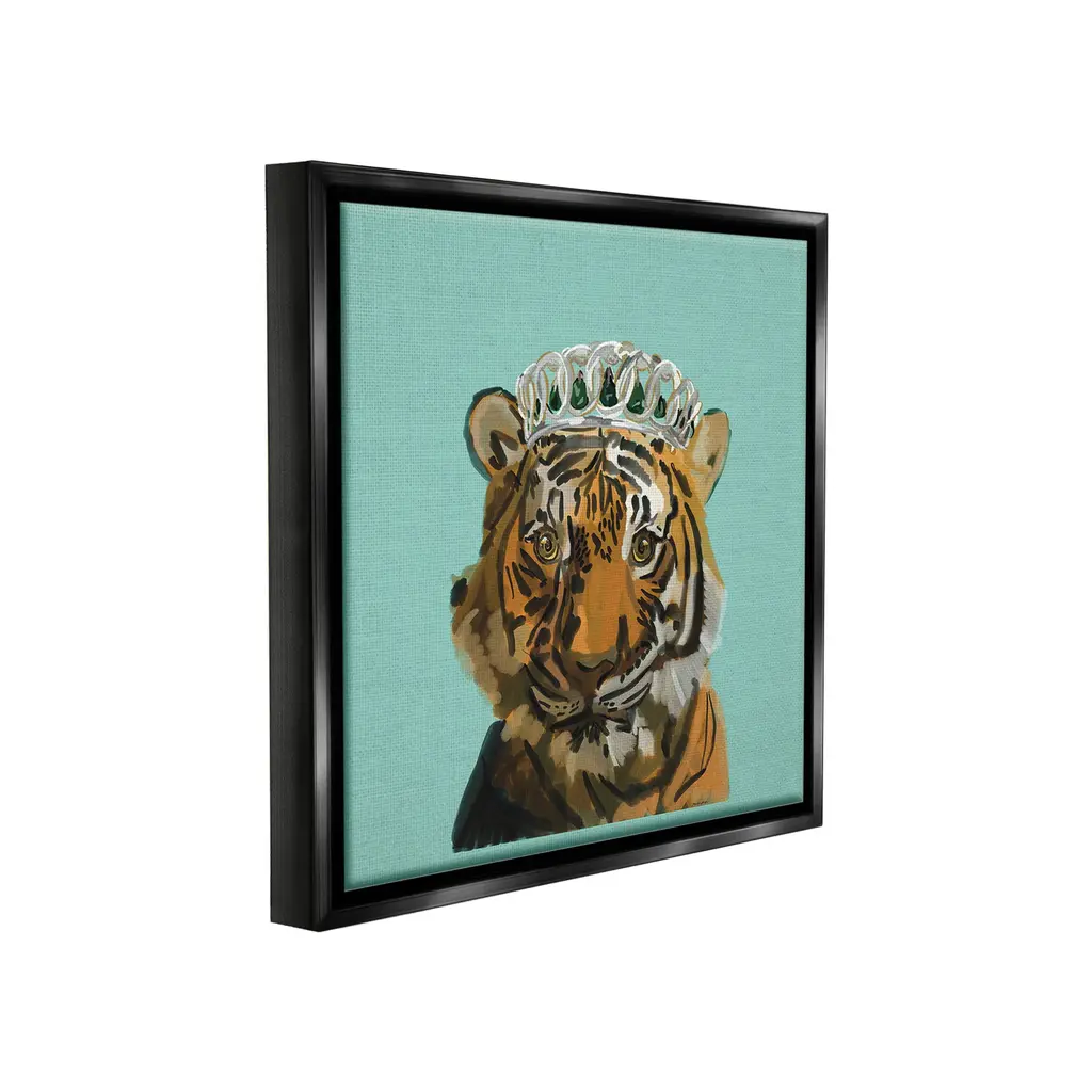 Elevate your home or office to the next level with Stupell Framed Floating Canvas Wall Art. Our premium hand-stretched canvas is mounted securely into a sturdy lightweight frame. The museum-style gap between the wrapped canvas and the box frame gives the illusion of floating artwork. Stupell Wall Art is made in the USA.Features: Dimensions: 18 x 1.7 x 18 Frame, 17 x 1.5 x 17 Canvas ArtFloating Frame Canvas Products are available in sizes 18"x18" and 25"x25". All Floating Frame Canvas Products have a 1.7" Depth.Wall Art is Ready to Hang with Hardware Free Hanging. No Installation required. For Easy Set Up Lean or Layer Artwork on Shelf or Against Wall. Artwork is Permently Fixed into the Frame.Our elevated 1.7" Thick Floating Frame is the perfect complement to our canvas style Wall Art. We use only the highest quality inks in house with industry leading printing solutions. Canvas is hand stretched over a durable wood foundation and then mounted securly into a Modern Box Frame. Made in the USA.Artwork Relates To: Accessories, Animal, Mammal, Tiger, Wildlife, Tiara, CrownDesign by Amelia Noyes