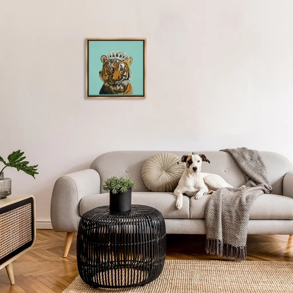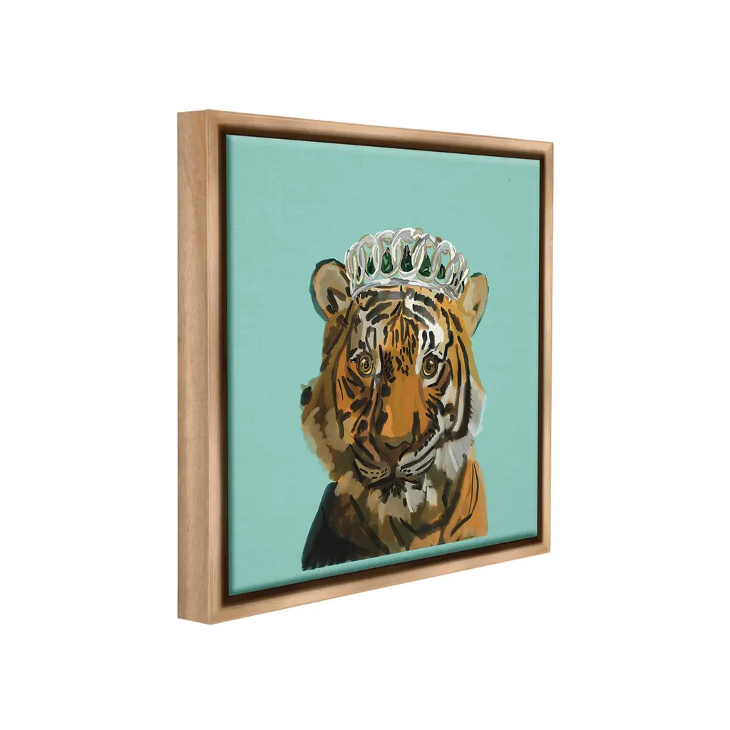 Elevate your home or office to the next level with Stupell Framed Floating Canvas Wall Art. Our premium hand-stretched canvas is mounted securely into a sturdy lightweight frame. The museum-style gap between the wrapped canvas and the box frame gives the illusion of floating artwork. Stupell Wall Art is made in the USA.Features: Dimensions: 18 x 1.7 x 18 Frame, 17 x 1.5 x 17 Canvas ArtFloating Frame Canvas Products are available in sizes 18"x18" and 25"x25". All Floating Frame Canvas Products have a 1.7" Depth.Wall Art is Ready to Hang with Hardware Free Hanging. No Installation required. For Easy Set Up Lean or Layer Artwork on Shelf or Against Wall. Artwork is Permently Fixed into the Frame.Our elevated 1.7" Thick Floating Frame is the perfect complement to our canvas style Wall Art. We use only the highest quality inks in house with industry leading printing solutions. Canvas is hand stretched over a durable wood foundation and then mounted securly into a Modern Box Frame. Made in the USA.Artwork Relates To: Accessories, Animal, Mammal, Tiger, Wildlife, Tiara, CrownDesign by Amelia Noyes