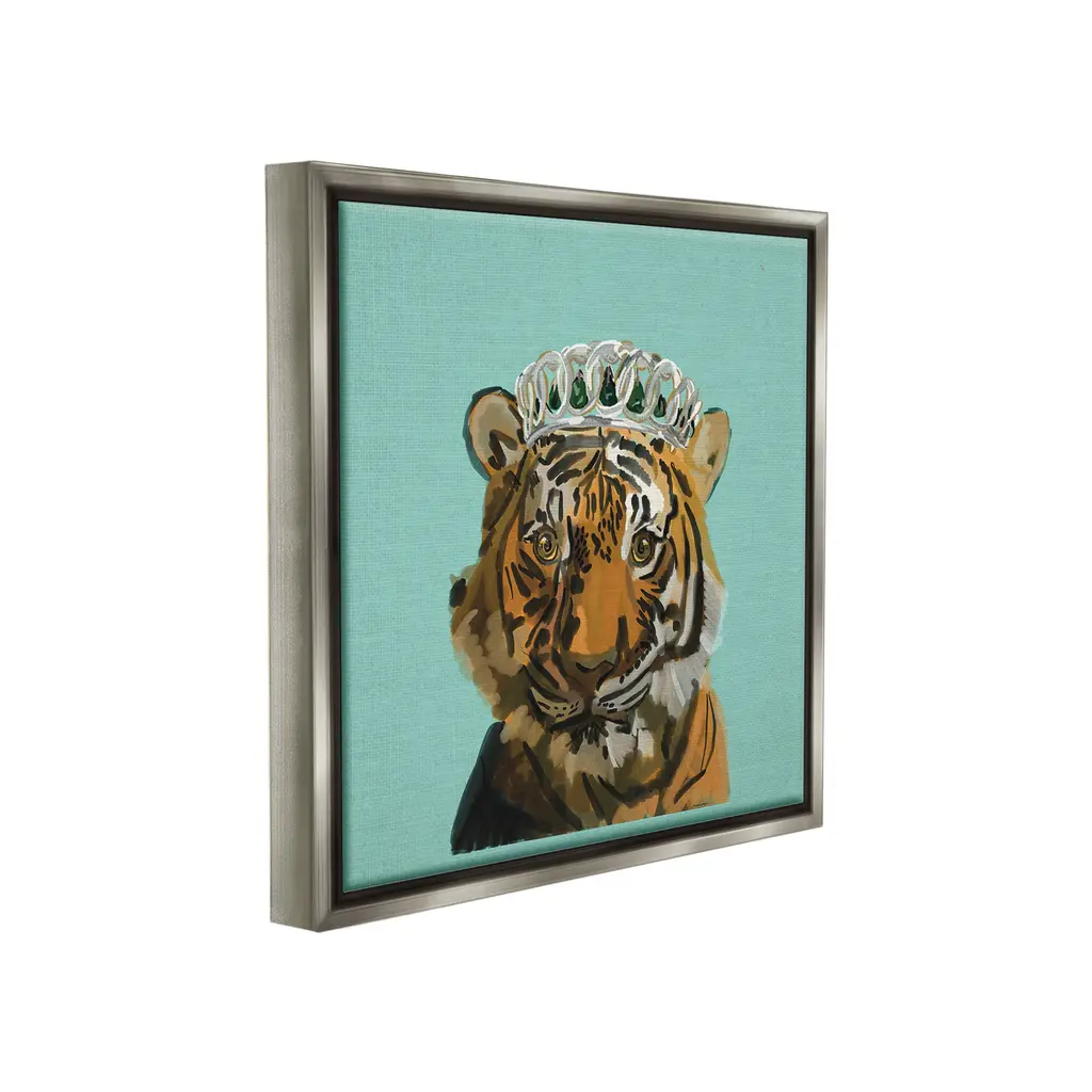 Elevate your home or office to the next level with Stupell Framed Floating Canvas Wall Art. Our premium hand-stretched canvas is mounted securely into a sturdy lightweight frame. The museum-style gap between the wrapped canvas and the box frame gives the illusion of floating artwork. Stupell Wall Art is made in the USA.Features: Dimensions: 18 x 1.7 x 18 Frame, 17 x 1.5 x 17 Canvas ArtFloating Frame Canvas Products are available in sizes 18"x18" and 25"x25". All Floating Frame Canvas Products have a 1.7" Depth.Wall Art is Ready to Hang with Hardware Free Hanging. No Installation required. For Easy Set Up Lean or Layer Artwork on Shelf or Against Wall. Artwork is Permently Fixed into the Frame.Our elevated 1.7" Thick Floating Frame is the perfect complement to our canvas style Wall Art. We use only the highest quality inks in house with industry leading printing solutions. Canvas is hand stretched over a durable wood foundation and then mounted securly into a Modern Box Frame. Made in the USA.Artwork Relates To: Accessories, Animal, Mammal, Tiger, Wildlife, Tiara, CrownDesign by Amelia Noyes