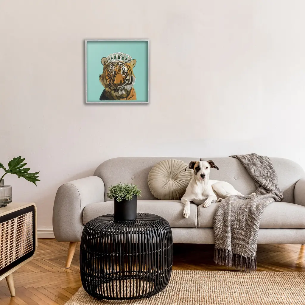 Add dimension to any room with our textured Framed Giclee Artwork. Our framed artwork is securely mounted into a 1.5-inch thick wood grain frame and ready to hang. Frames are available in three alluring styles: black, gray farmhouse and white. In addition, you should check out our oversized options if you want a statement piece. Stupell Wall Art is made in the USA.Features: Dimensions: 12 x 1.5 x 12 FramedFramed Giclee Product Sizes Include 12"x12", 17"x17", and 24"x24". Framed Giclee Products have a 1.5" Depth. Wall Art is Ready to Hang with Hardware Free Hanging. No installation required. For Easy Set Up Lean or Layer Artwork on Shelf or Against Wall.Our giclée prints are carefully mounted on a durable MDF backing, and then perfectly finished in a 1.5 inch thick woodgrain frame. Mounted frame colors include black, gray farmhouse and white. Made In USA.Artwork Relates To: Accessories, Animal, Mammal, Tiger, Wildlife, Tiara, CrownDesign by Amelia Noyes