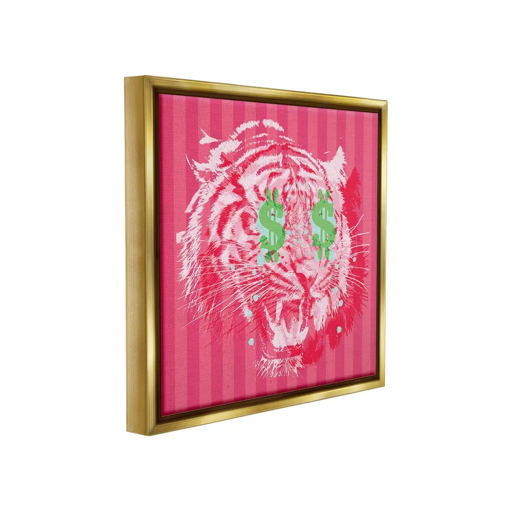 Stupell Tiger With Dollar Symbol Framed Floater Canvas Wall Art Design By Lil' Rue - 18 X 18 - Gold