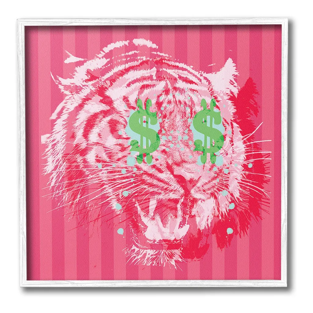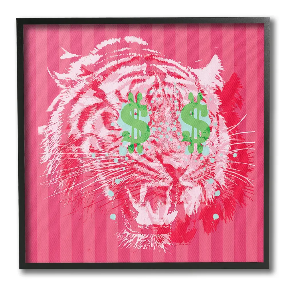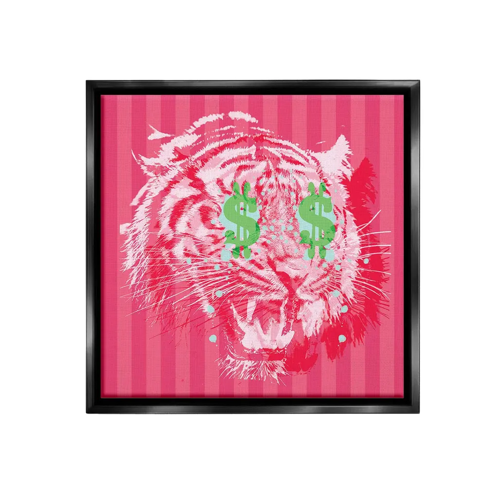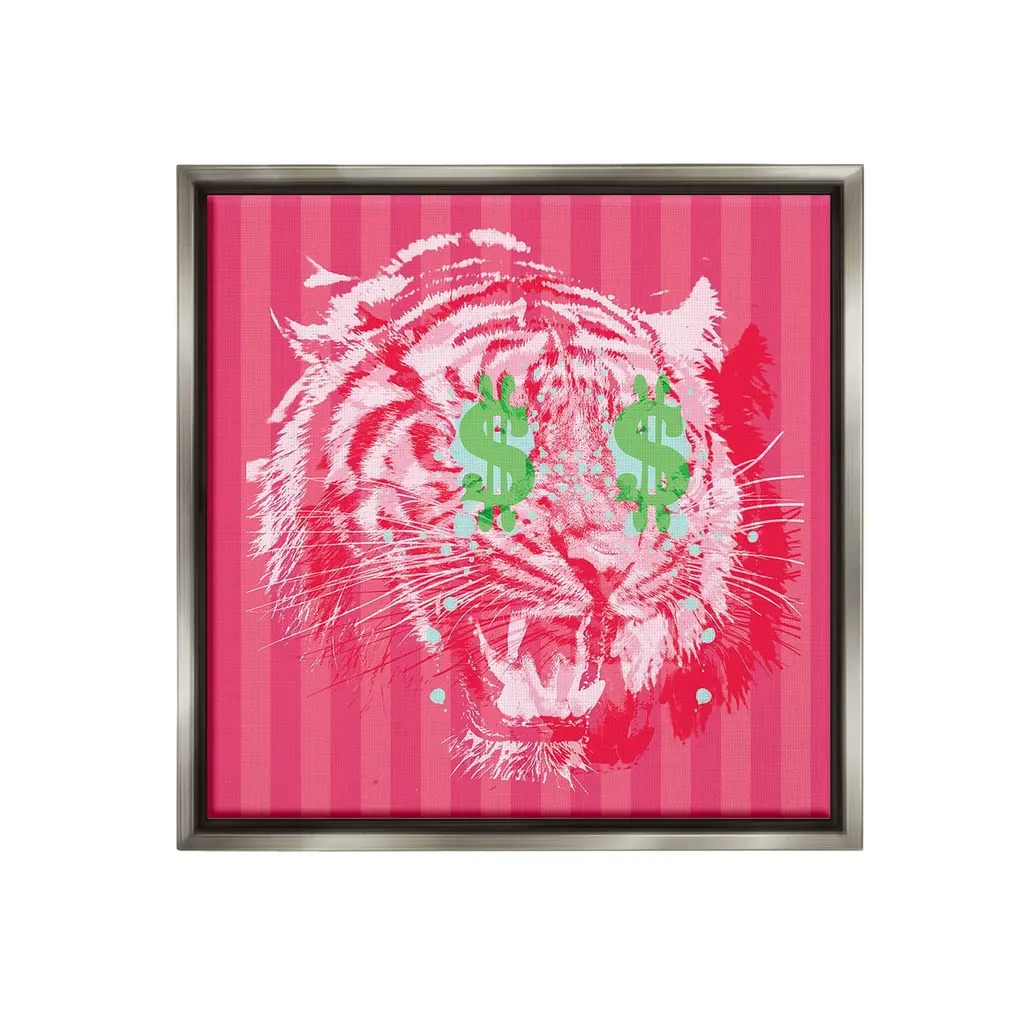 Elevate your home or office to the next level with Stupell Framed Floating Canvas Wall Art. Our premium hand-stretched canvas is mounted securely into a sturdy lightweight frame. The museum-style gap between the wrapped canvas and the box frame gives the illusion of floating artwork. Stupell Wall Art is made in the USA.Features: Dimensions: 18 x 1.7 x 18 Frame, 17 x 1.5 x 17 Canvas ArtFloating Frame Canvas Products are available in sizes 18"x18" and 25"x25". All Floating Frame Canvas Products have a 1.7" Depth.Wall Art is Ready to Hang with Hardware Free Hanging. No Installation required. For Easy Set Up Lean or Layer Artwork on Shelf or Against Wall. Artwork is Permently Fixed into the Frame.Our elevated 1.7" Thick Floating Frame is the perfect complement to our canvas style Wall Art. We use only the highest quality inks in house with industry leading printing solutions. Canvas is hand stretched over a durable wood foundation and then mounted securly into a Modern Box Frame. Made in the USA.Artwork Relates To: Purple, Animal, Mammal, Tiger, Wildlife, Abstract, Modern, Pop Style, Stripes, Pattern, Money, Symbol, DollarDesign by Lil' Rue