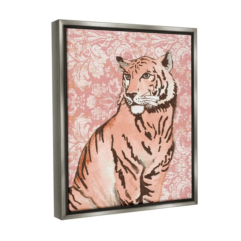 Elevate your home or office to the next level with Stupell Framed Floating Canvas Wall Art. Our premium hand-stretched canvas is mounted securely into a sturdy lightweight frame. The museum-style gap between the wrapped canvas and the box frame gives the illusion of floating artwork. Stupell Wall Art is made in the USA.Features: Dimensions: 17 x 1.7 x 21 Frame, 16 x 1.5 x 20 Canvas ArtFloating Frame Canvas Products are available in sizes 17"x21" and 25"x31". All Floating Frame Canvas Products have a 1.7" Depth.Wall Art is Ready to Hang with Hardware Free Hanging. No Installation required. For Easy Set Up Lean or Layer Artwork on Shelf or Against Wall. Artwork is Permently Fixed into the Frame.Our elevated 1.7" Thick Floating Frame is the perfect complement to our canvas style Wall Art. We use only the highest quality inks in house with industry leading printing solutions. Canvas is hand stretched over a durable wood foundation and then mounted securly into a Modern Box Frame. Made in the USA.Artwork Relates To: Animal, Mammal, Tiger, Wildlife, Floral, Pattern, Damask, AbstractDesign by Elizabeth Medley