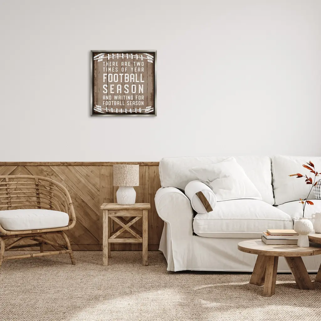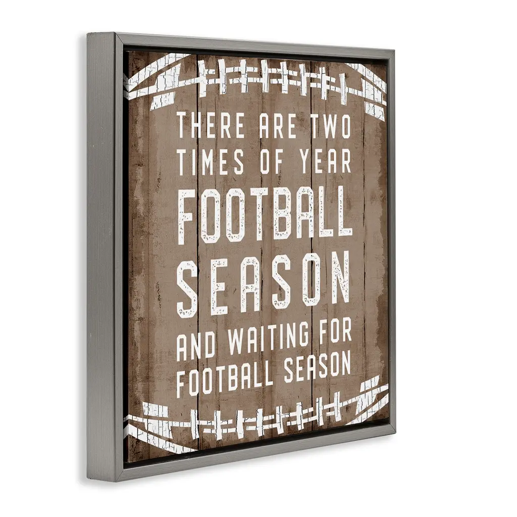 Elevate your home or office to the next level with Stupell Framed Floating Canvas Wall Art. Our premium hand-stretched canvas is mounted securely into a sturdy lightweight frame. The museum-style gap between the wrapped canvas and the box frame gives the illusion of floating artwork. Stupell Wall Art is made in the USA.Features: Dimensions: 18 x 1.7 x 18 Frame, 17 x 1.5 x 17 Canvas ArtFloating Frame Canvas Products are available in sizes 18"x18" and 25"x25". All Floating Frame Canvas Products have a 1.7" Depth.Wall Art is Ready to Hang with Hardware Free Hanging. No Installation required. For Easy Set Up Lean or Layer Artwork on Shelf or Against Wall. Artwork is Permently Fixed into the Frame.Our elevated 1.7" Thick Floating Frame is the perfect complement to our canvas style Wall Art. We use only the highest quality inks in house with industry leading printing solutions. Canvas is hand stretched over a durable wood foundation and then mounted securly into a Modern Box Frame. Made in the USA.Artwork Relates To: Sports, Humor, Rustic, Mancave, Football, Fall, Winter, SeasonalDesign by CAD Designs