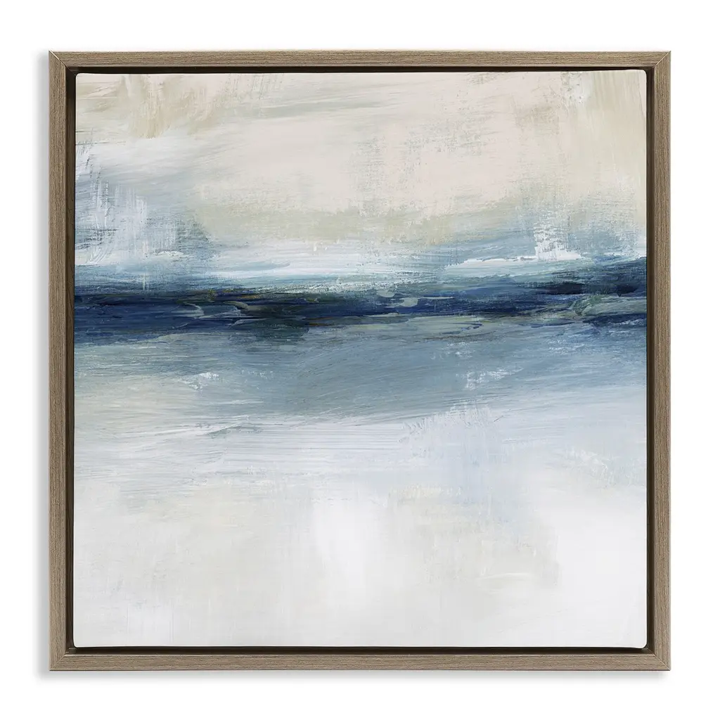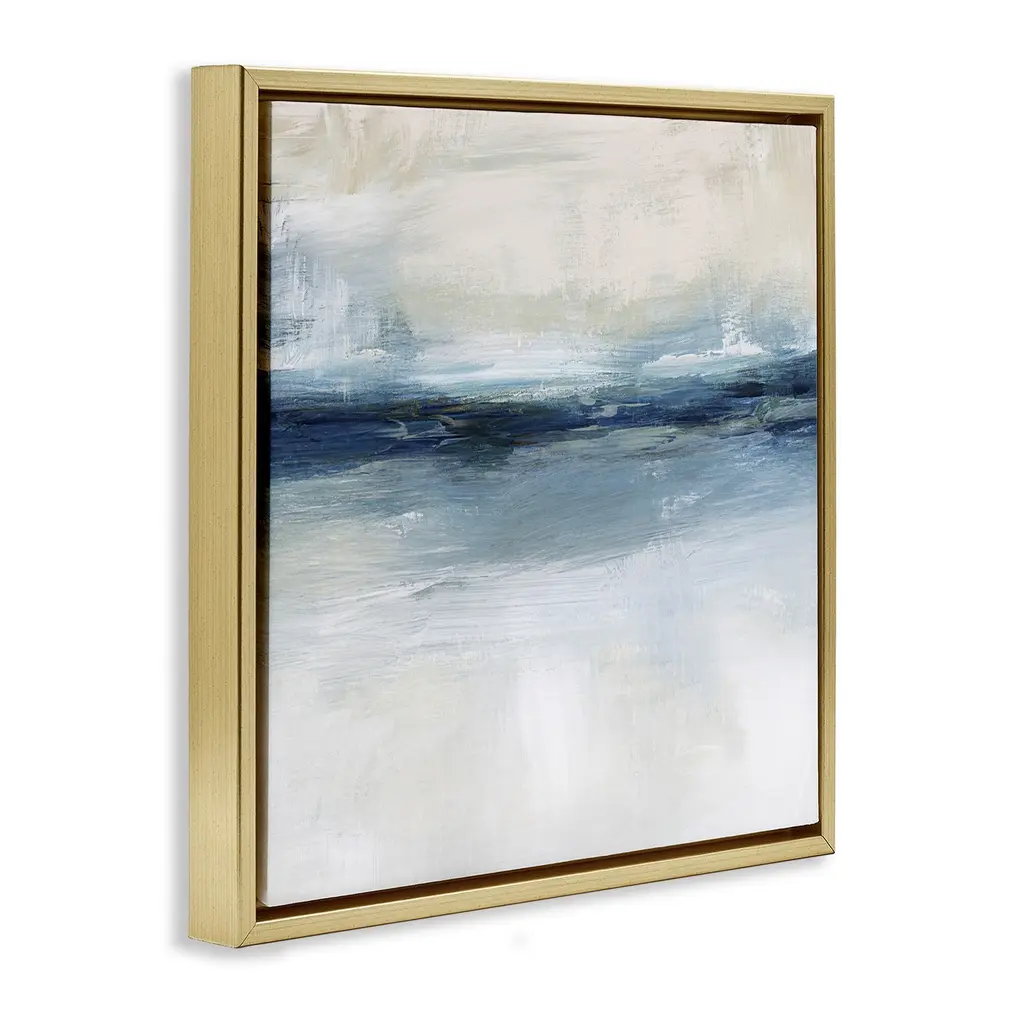 Elevate your home or office to the next level with Stupell Framed Floating Canvas Wall Art. Our premium hand-stretched canvas is mounted securely into a sturdy lightweight frame. The museum-style gap between the wrapped canvas and the box frame gives the illusion of floating artwork. Stupell Wall Art is made in the USA.Features: Dimensions: 18 x 1.7 x 18 Frame, 17 x 1.5 x 17 Canvas ArtFloating Frame Canvas Products are available in sizes 18"x18" and 25"x25". All Floating Frame Canvas Products have a 1.7" Depth.Wall Art is Ready to Hang with Hardware Free Hanging. No Installation required. For Easy Set Up Lean or Layer Artwork on Shelf or Against Wall. Artwork is Permently Fixed into the Frame.Our elevated 1.7" Thick Floating Frame is the perfect complement to our canvas style Wall Art. We use only the highest quality inks in house with industry leading printing solutions. Canvas is hand stretched over a durable wood foundation and then mounted securly into a Modern Box Frame. Made in the USA.Artwork Relates To: Abstract, Landscape, Beach, Nautical, Fog, GreyDesign by Nina Blue