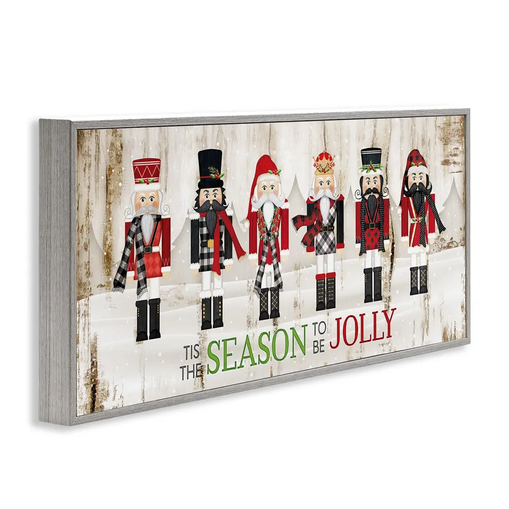Stupell To Be Jolly Festive Phrase Winter Christmas Nutcrackers Framed Wall Art - Red - 10 X 24 - Grey