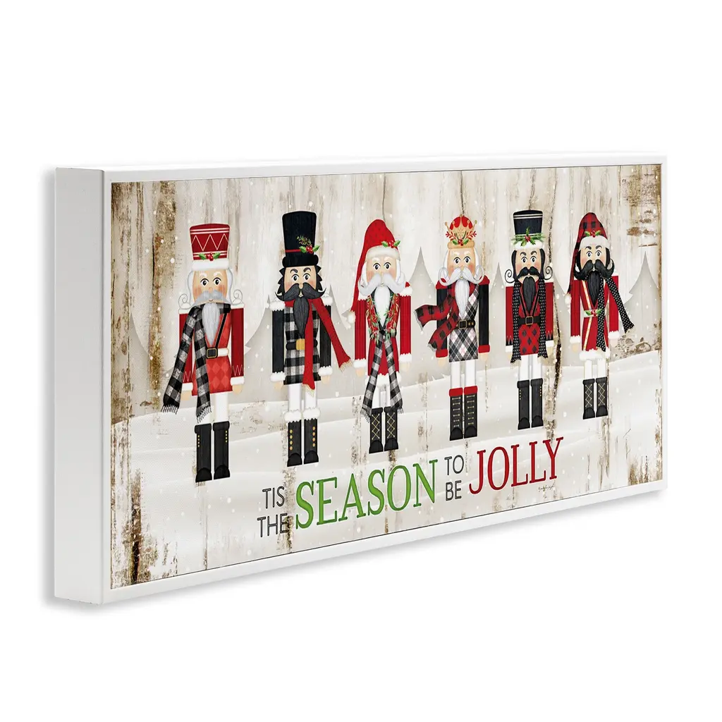 Stupell To Be Jolly Festive Phrase Winter Christmas Nutcrackers Framed Wall Art - Red - 10 X 24 - White