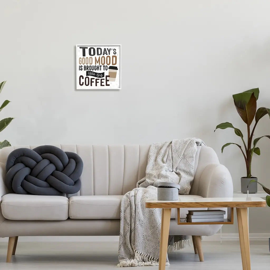 Add dimension to any room with our textured Framed Giclee Artwork. Our framed artwork is securely mounted into a 1.5-inch thick wood grain frame and ready to hang. Frames are available in three alluring styles: black, gray farmhouse and white. In addition, you should check out our oversized options if you want a statement piece. Stupell Wall Art is made in the USA.Features: Dimensions: 12 x 1.5 x 12 FramedFramed Giclee Sizes Include Standard: 12 x 1.5 x 12 Large: 17 x 1.5 x 17 Oversized: 24 x 1.5 x 24Wall Art is Ready to Hang - No Installation or Hardware Needed. For Easy Set Up Lean or Layer Artwork on Shelf or Against Wall.Our giclée prints are carefully mounted on a durable MDF backing, and then perfectly finished in a 1.5 inch thick woodgrain frame. Mounted frame colors include black, gray farmhouse and white. Made In USA.Artwork Relates To: Beverage, Coffee, Coffee Cup, Cup, Morning, Kitchen, Pattern, Today's Good Mood Is Brought To You By CoffeeDesign by Kyra Brown