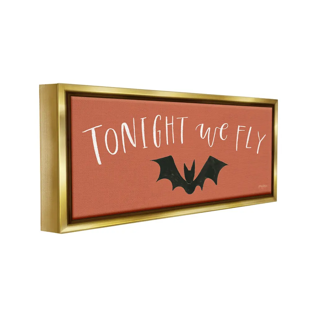 Elevate your home or office to the next level with Stupell Framed Floating Canvas Wall Art. Our premium hand-stretched canvas is mounted securely into a sturdy lightweight frame. The museum-style gap between the wrapped canvas and the box frame gives the illusion of floating artwork. Stupell Wall Art is made in the USA.Features: Dimensions: 25 x 1.7 x 11 Frame, 24 x 1.5 x 10 Canvas ArtFloating Frame Canvas Products are available in sizes 25"x11" and 31"x14". All Floating Frame Canvas Products have a 1.7" Depth.Wall Art is Ready to Hang with Hardware Free Hanging. No Installation required. For Easy Set Up Lean or Layer Artwork on Shelf or Against Wall. Artwork is Permently Fixed into the Frame.Our elevated 1.7" Thick Floating Frame is the perfect complement to our canvas style Wall Art. We use only the highest quality inks in house with industry leading printing solutions. Canvas is hand stretched over a durable wood foundation and then mounted securly into a Modern Box Frame. Made in the USA.Artwork Relates To: Festival, Halloween, Bat, Whimsical, Minimal, Tonight We FlyDesign by Jenaya Jackson