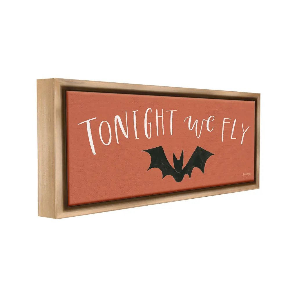 Elevate your home or office to the next level with Stupell Framed Floating Canvas Wall Art. Our premium hand-stretched canvas is mounted securely into a sturdy lightweight frame. The museum-style gap between the wrapped canvas and the box frame gives the illusion of floating artwork. Stupell Wall Art is made in the USA.Features: Dimensions: 25 x 1.7 x 11 Frame, 24 x 1.5 x 10 Canvas ArtFloating Frame Canvas Products are available in sizes 25"x11" and 31"x14". All Floating Frame Canvas Products have a 1.7" Depth.Wall Art is Ready to Hang with Hardware Free Hanging. No Installation required. For Easy Set Up Lean or Layer Artwork on Shelf or Against Wall. Artwork is Permently Fixed into the Frame.Our elevated 1.7" Thick Floating Frame is the perfect complement to our canvas style Wall Art. We use only the highest quality inks in house with industry leading printing solutions. Canvas is hand stretched over a durable wood foundation and then mounted securly into a Modern Box Frame. Made in the USA.Artwork Relates To: Festival, Halloween, Bat, Whimsical, Minimal, Tonight We FlyDesign by Jenaya Jackson