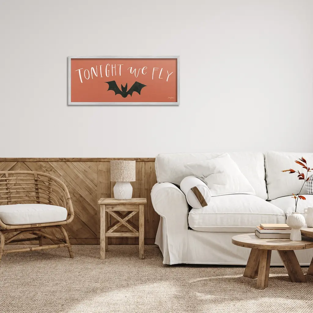 Add dimension to any room with our textured Framed Giclee Artwork. Our framed artwork is securely mounted into a 1.5-inch thick wood grain frame and ready to hang. Frames are available in three alluring styles: black, gray farmhouse and white. In addition, you should check out our oversized options if you want a statement piece. Stupell Wall Art is made in the USA.Features: Dimensions: 24 x 1.5 x 10 FramedFramed Giclee Product Sizes include 24"x10" and 30"x13". All Framed Giclee products have a 1.5" Depth.Wall Art is Ready to Hang with Hardware Free Hanging. No installation required. For Easy Set Up Lean or Layer Artwork on Shelf or Against Wall.Our giclée prints are carefully mounted on a durable MDF backing, and then perfectly finished in a 1.5 inch thick woodgrain frame. Mounted frame colors include black, gray farmhouse and white. Made In USA.Artwork Relates To: Festival, Halloween, Bat, Whimsical, Minimal, Tonight We FlyDesign by Jenaya Jackson