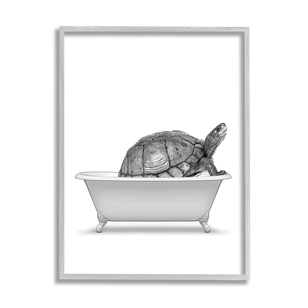Add dimension to any room with our textured Framed Giclee Artwork. Our framed artwork is securely mounted into a 1.5-inch thick wood grain frame and ready to hang. Frames are available in three alluring styles: black, gray farmhouse and white. In addition, you should check out our oversized options if you want a statement piece. Stupell Wall Art is made in the USA.Features: Dimensions: 11 x 1.5 x 14 FramedFramed Giclee Sizes Include Standard: 11 x 1.5 x 14 Large: 16 x 1.5 x 20 Oversized: 24 x 1.5 x 30Wall Art is Ready to Hang - No Installation or Hardware Needed. For Easy Set Up Lean or Layer Artwork on Shelf or Against Wall.Our giclée prints are carefully mounted on a durable MDF backing, and then perfectly finished in a 1.5 inch thick woodgrain frame. Mounted frame colors include black, gray farmhouse and white. Made In USA.Artwork Relates To: Animal, Mammal, Wildlife, Bathroom, Tortoise, TurtleDesign by Annalisa Latella