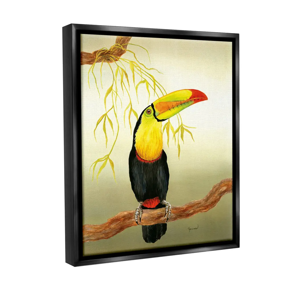 Elevate your home or office to the next level with Stupell Framed Floating Canvas Wall Art. Our premium hand-stretched canvas is mounted securely into a sturdy lightweight frame. The museum-style gap between the wrapped canvas and the box frame gives the illusion of floating artwork. Stupell Wall Art is made in the USA.Features: Dimensions: 17 x 1.7 x 21 Frame, 16 x 1.5 x 20 Canvas ArtFloating Frame Canvas Products are available in sizes 17"x21" and 25"x31". All Floating Frame Canvas Products have a 1.7" Depth.Wall Art is Ready to Hang with Hardware Free Hanging. No Installation required. For Easy Set Up Lean or Layer Artwork on Shelf or Against Wall. Artwork is Permently Fixed into the Frame.Our elevated 1.7" Thick Floating Frame is the perfect complement to our canvas style Wall Art. We use only the highest quality inks in house with industry leading printing solutions. Canvas is hand stretched over a durable wood foundation and then mounted securly into a Modern Box Frame. Made in the USA.Artwork Relates To: Animal, Beak, Bird, Toucan, Tropical, Rainforest, Nature, Branch, Leaf, TreeDesign by Christine Reichow