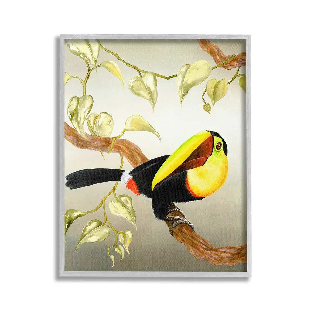 Stupell Toucan Perched On Branch Framed Floater Canvas Wall Art Design By Christine Reichow - 17 X 21 - Grey