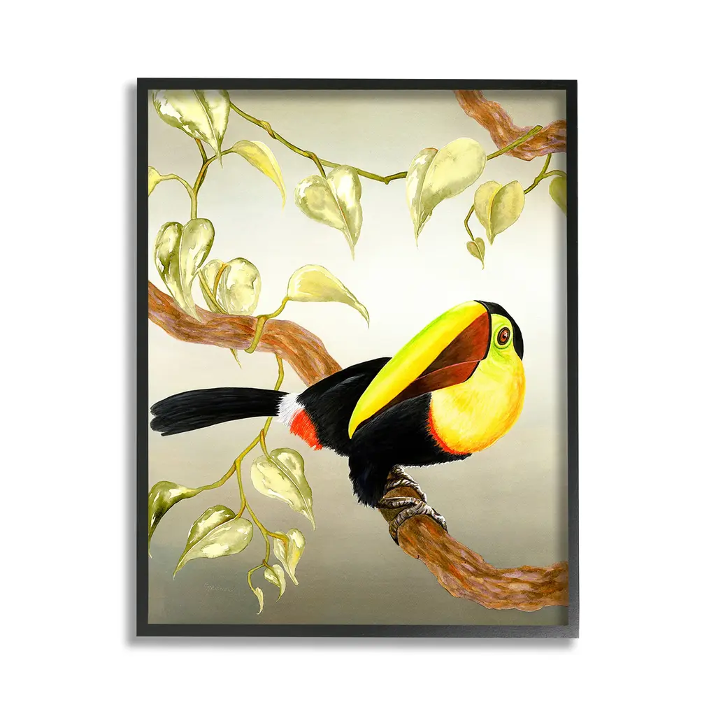 Elevate your home or office to the next level with Stupell Framed Floating Canvas Wall Art. Our premium hand-stretched canvas is mounted securely into a sturdy lightweight frame. The museum-style gap between the wrapped canvas and the box frame gives the illusion of floating artwork. Stupell Wall Art is made in the USA.Features: Dimensions: 17 x 1.7 x 21 Frame, 16 x 1.5 x 20 Canvas ArtFloating Frame Canvas Products are available in sizes 17"x21" and 25"x31". All Floating Frame Canvas Products have a 1.7" Depth.Wall Art is Ready to Hang with Hardware Free Hanging. No Installation required. For Easy Set Up Lean or Layer Artwork on Shelf or Against Wall. Artwork is Permently Fixed into the Frame.Our elevated 1.7" Thick Floating Frame is the perfect complement to our canvas style Wall Art. We use only the highest quality inks in house with industry leading printing solutions. Canvas is hand stretched over a durable wood foundation and then mounted securly into a Modern Box Frame. Made in the USA.Artwork Relates To: Animal, Beak, Bird, Toucan, Plant, Nature, Leaf, BranchDesign by Christine Reichow