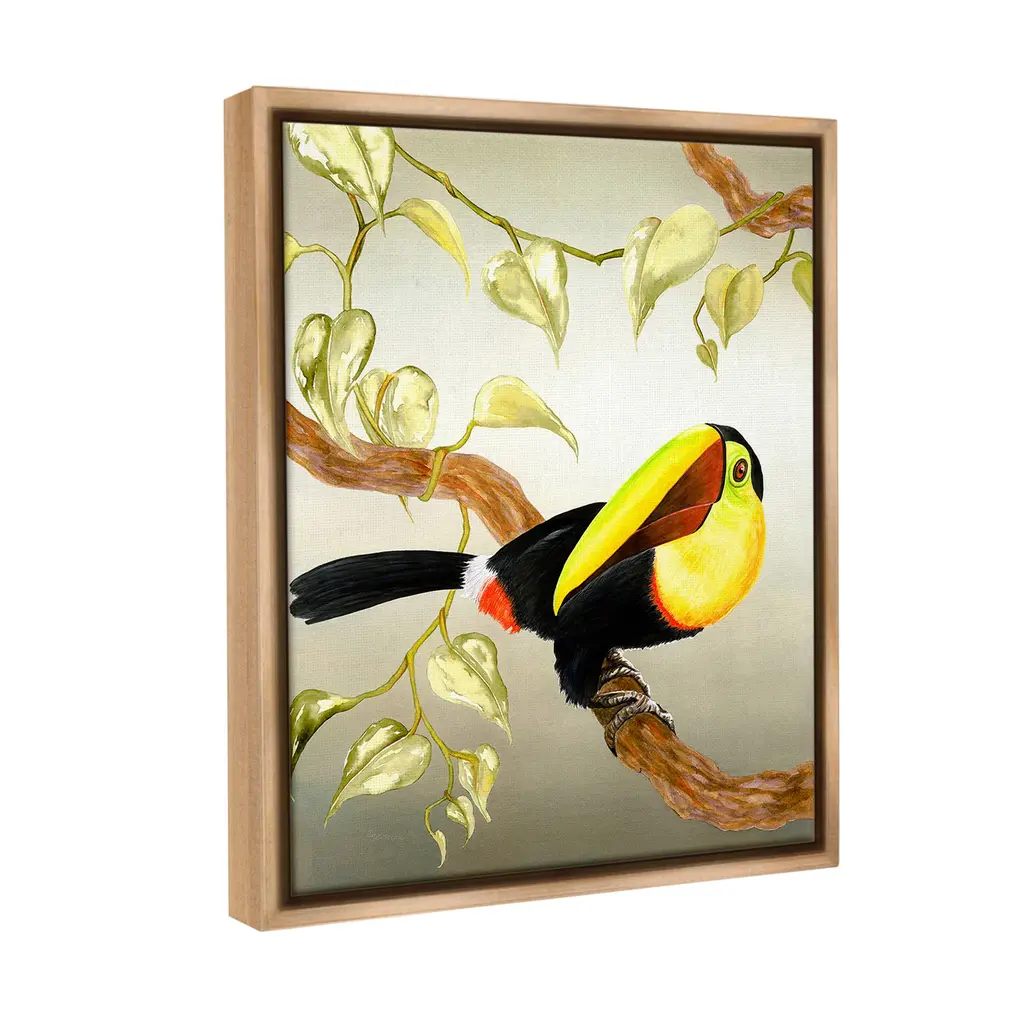 Elevate your home or office to the next level with Stupell Framed Floating Canvas Wall Art. Our premium hand-stretched canvas is mounted securely into a sturdy lightweight frame. The museum-style gap between the wrapped canvas and the box frame gives the illusion of floating artwork. Stupell Wall Art is made in the USA.Features: Dimensions: 17 x 1.7 x 21 Frame, 16 x 1.5 x 20 Canvas ArtFloating Frame Canvas Products are available in sizes 17"x21" and 25"x31". All Floating Frame Canvas Products have a 1.7" Depth.Wall Art is Ready to Hang with Hardware Free Hanging. No Installation required. For Easy Set Up Lean or Layer Artwork on Shelf or Against Wall. Artwork is Permently Fixed into the Frame.Our elevated 1.7" Thick Floating Frame is the perfect complement to our canvas style Wall Art. We use only the highest quality inks in house with industry leading printing solutions. Canvas is hand stretched over a durable wood foundation and then mounted securly into a Modern Box Frame. Made in the USA.Artwork Relates To: Animal, Beak, Bird, Toucan, Plant, Nature, Leaf, BranchDesign by Christine Reichow