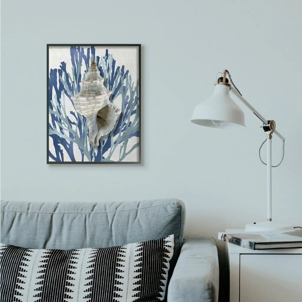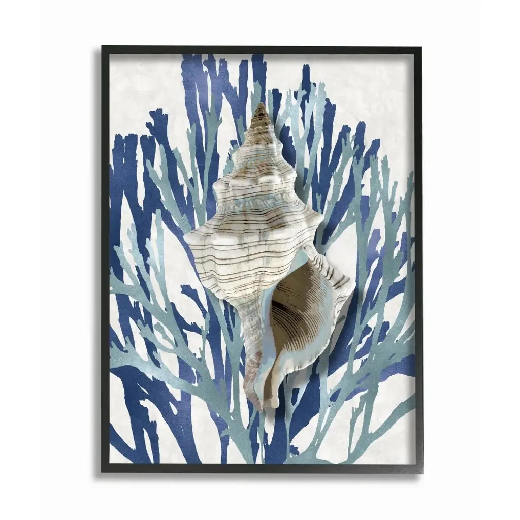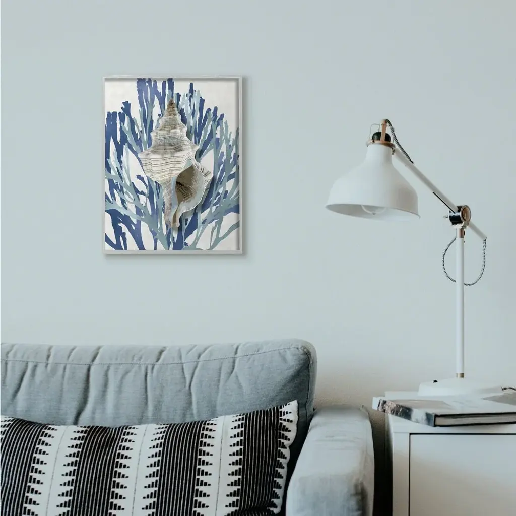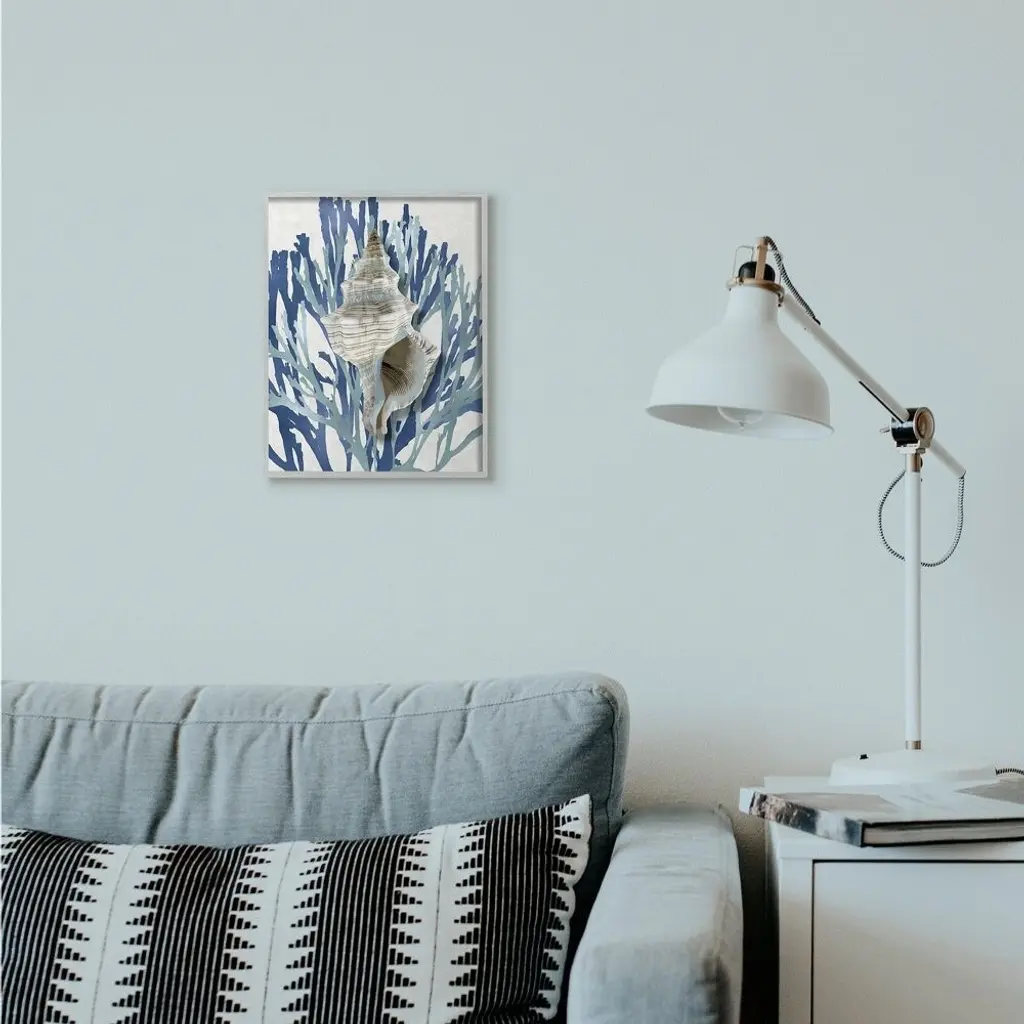 Stupell Tower Shell Coral Blue Beach Design Framed Giclee Texturized Art By Caroline Kelly - 16 X 20 - White