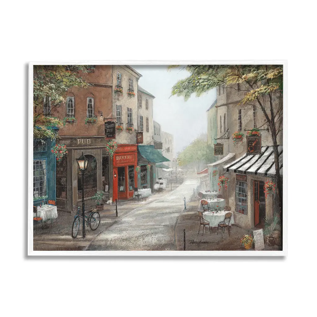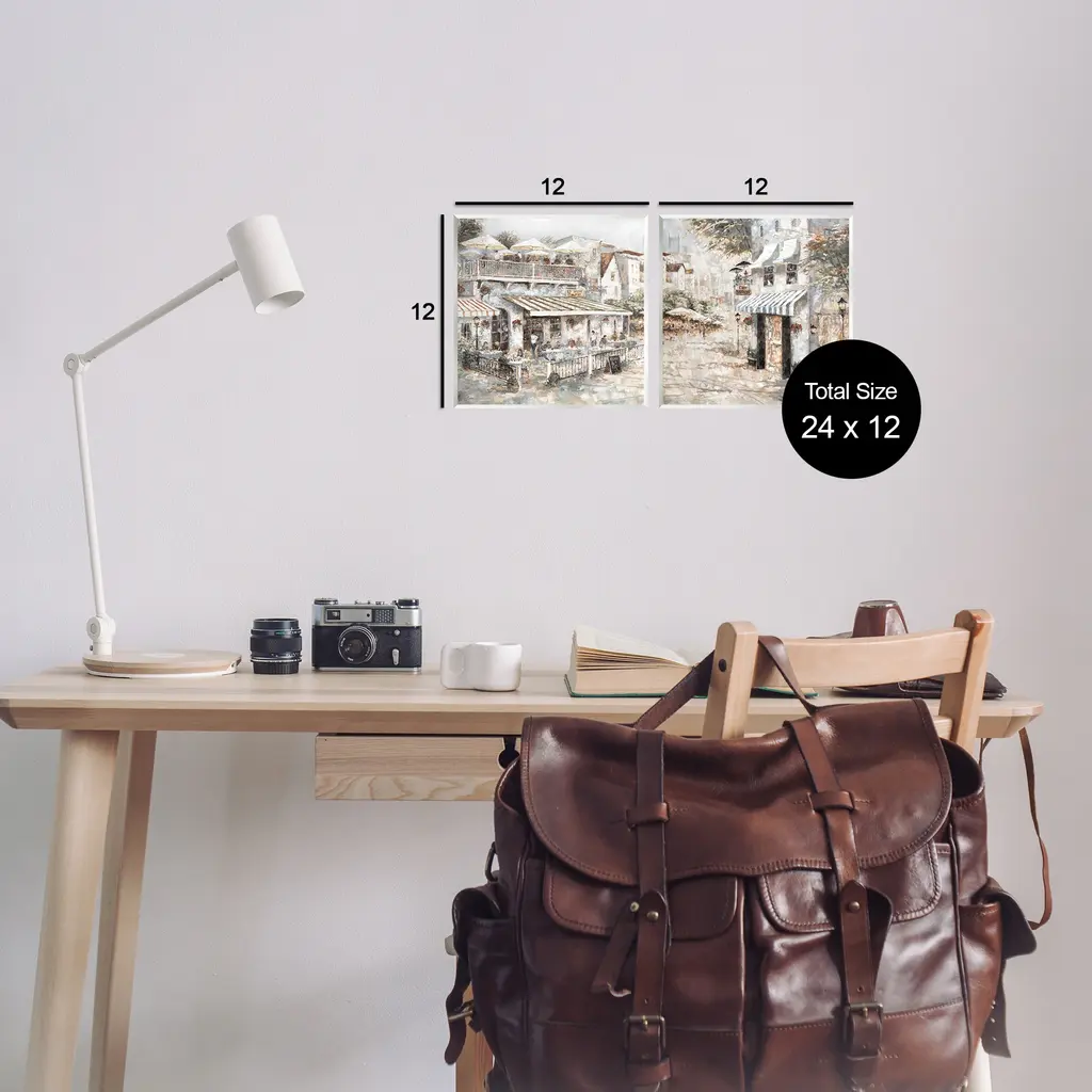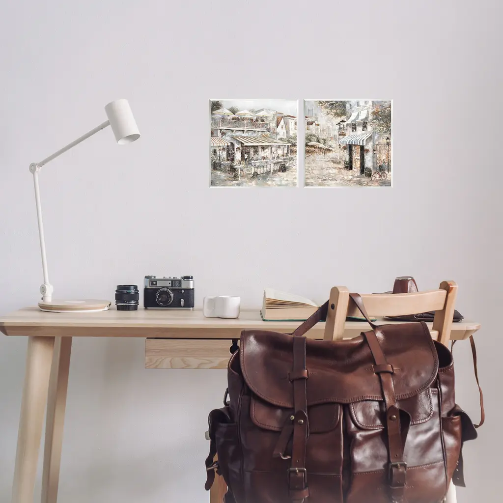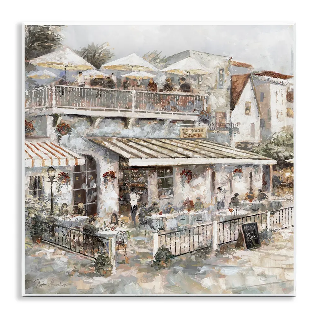 Fill any space with Stupell Wall Art Sets. Our wall plaques start as high-quality lithograph prints mounted on durable 0.5-inch thick MDF wood. Each piece is hand finished and comes with a fresh layer of white foil on the sides to give it a crisp, clean look. Plaques arrive ready to hang without installation and come with removable plastic corners to keep them from damage in transit. Stupell Wall Art is made in the USA.Features: Dimensions: 2 Piece Set, Each Panel is 12 x 0.5 x 12 InchesWall Art is Ready to Hang with Hardware Free Hanging. No Installation required. For Easy Set Up Lean or Layer Artwork on Shelf or Against Wall. Artwork is Permently Fixed into the Frame.All of our wall plaques start off as high quality lithograph prints that are then mounted on durable 0.5 inch thick MDF wood. Each piece is hand finished and comes with a fresh layer of foil on the sides to give it a crisp clean look. Made In USA.Artwork Relates To: City, Town, Cityscape, Quaint, Café, BistroDesign by Ruane Manning