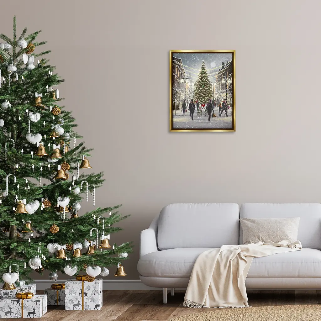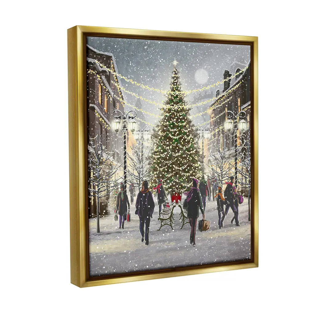 Elevate your home or office to the next level with Stupell Framed Floating Canvas Wall Art. Our premium hand-stretched canvas is mounted securely into a sturdy lightweight frame. The museum-style gap between the wrapped canvas and the box frame gives the illusion of floating artwork. Stupell Wall Art is made in the USA.Features: Dimensions: 17 x 1.7 x 21 Frame, 16 x 1.5 x 20 Canvas ArtFloating Frame Canvas Products are available in sizes 17"x21" and 25"x31". All Floating Frame Canvas Products have a 1.7" Depth.Wall Art is Ready to Hang with Hardware Free Hanging. No Installation required. For Easy Set Up Lean or Layer Artwork on Shelf or Against Wall. Artwork is Permently Fixed into the Frame.Our elevated 1.7" Thick Floating Frame is the perfect complement to our canvas style Wall Art. We use only the highest quality inks in house with industry leading printing solutions. Canvas is hand stretched over a durable wood foundation and then mounted securly into a Modern Box Frame. Made in the USA.Artwork Relates To: Winter, Snow, Town, City, Tree, Christmas, Holiday, PeopleDesign by Pip Wilson