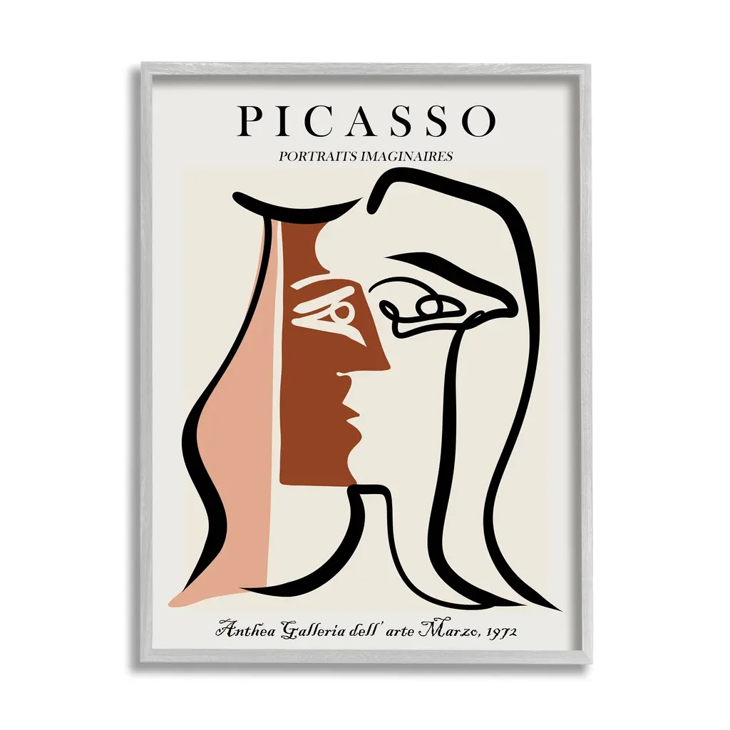 Stupell Traditional Abstract Picasso Portrait Imaginary Faces Terracotta Framed Wall Art - 16 X 20 - White