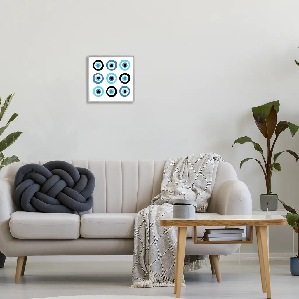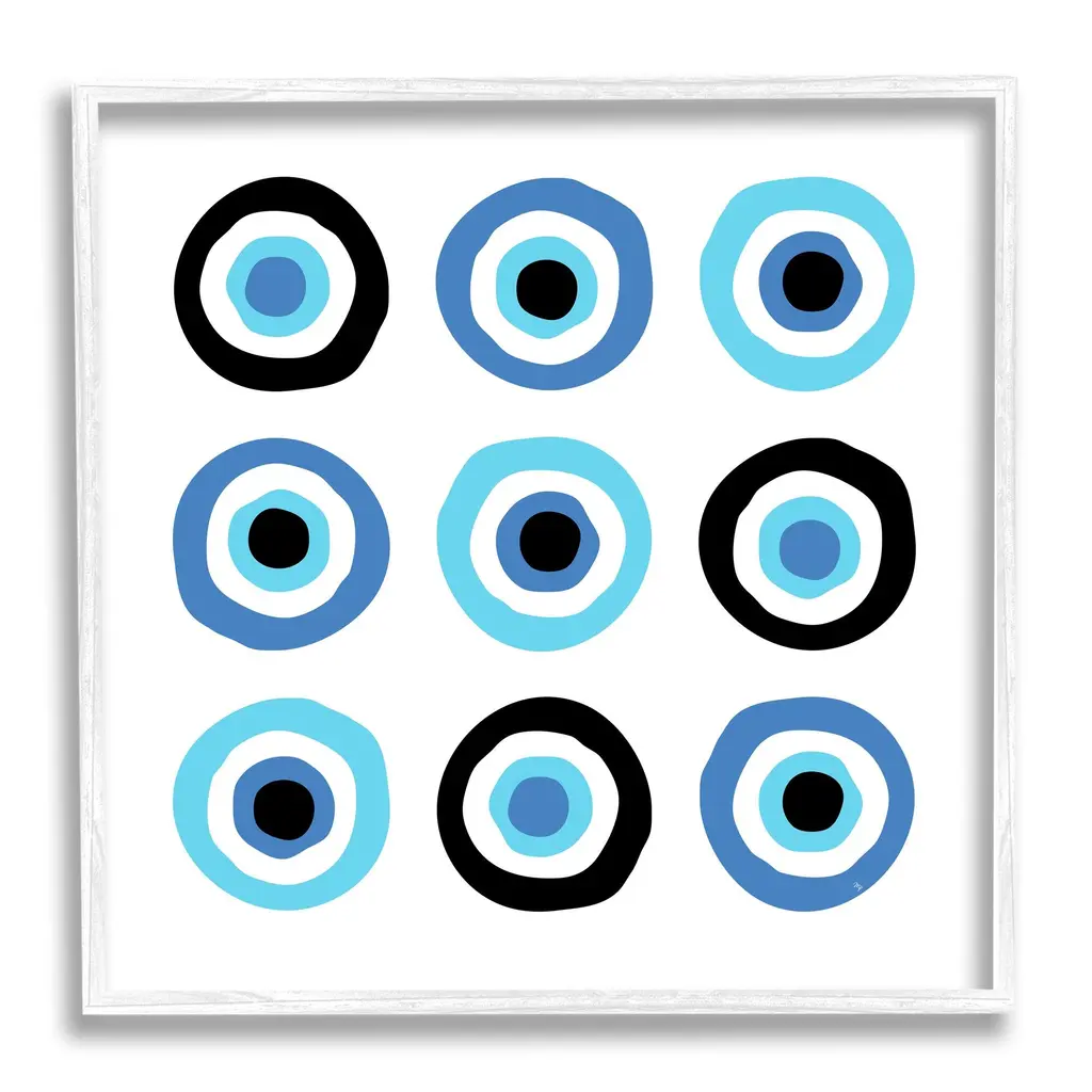Stupell Traditional Art Deco Evil Eyes Symbolic Spiral Amulets Framed Wall Art, Design By Martina Pavlova - Blue - 12 X 12 - Grey