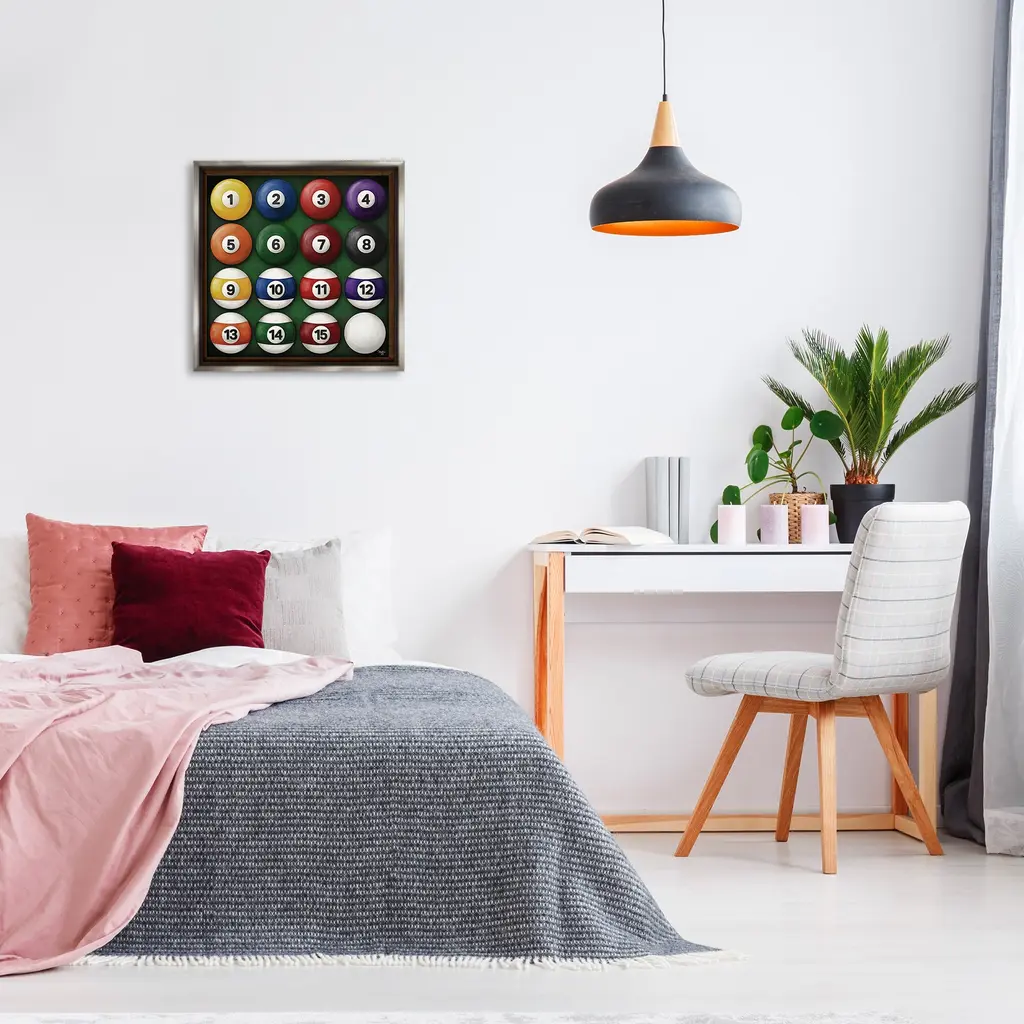 Elevate your home or office to the next level with Stupell Framed Floating Canvas Wall Art. Our premium hand-stretched canvas is mounted securely into a sturdy lightweight frame. The museum-style gap between the wrapped canvas and the box frame gives the illusion of floating artwork. Stupell Wall Art is made in the USA.Features: Dimensions: 18 x 1.7 x 18 Frame, 17 x 1.5 x 17 Canvas ArtFloating Frame Canvas Products are available in sizes 18"x18" and 25"x25". All Floating Frame Canvas Products have a 1.7" Depth.Wall Art is Ready to Hang with Hardware Free Hanging. No Installation required. For Easy Set Up Lean or Layer Artwork on Shelf or Against Wall. Artwork is Permently Fixed into the Frame.Our elevated 1.7" Thick Floating Frame is the perfect complement to our canvas style Wall Art. We use only the highest quality inks in house with industry leading printing solutions. Canvas is hand stretched over a durable wood foundation and then mounted securly into a Modern Box Frame. Made in the USA.Artwork Relates To: Billiards, Game, Bar, Casino, Symbol, Number, Pool, Cue BallDesign by Molly B.