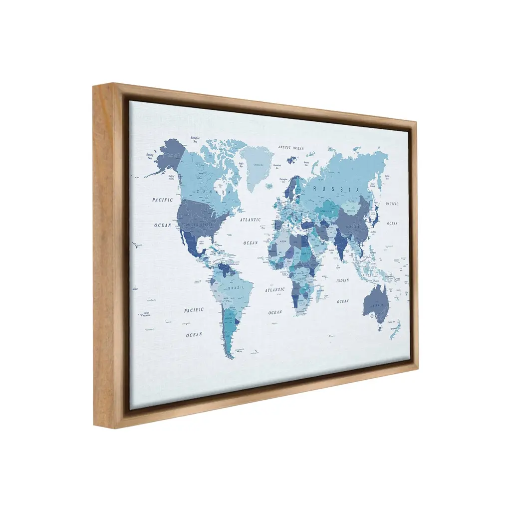 Elevate your home or office to the next level with Stupell Framed Floating Canvas Wall Art. Our premium hand-stretched canvas is mounted securely into a sturdy lightweight frame. The museum-style gap between the wrapped canvas and the box frame gives the illusion of floating artwork. Stupell Wall Art is made in the USA.Features: Dimensions: 21 x 1.7 x 17 Frame, 20 x 1.5 x 16 Canvas ArtFloating Frame Canvas Products are available in sizes 21"x17" and 31"x25". All Floating Frame Canvas Products have a 1.7" Depth.Wall Art is Ready to Hang with Hardware Free Hanging. No Installation required. For Easy Set Up Lean or Layer Artwork on Shelf or Against Wall. Artwork is Permently Fixed into the Frame.Our elevated 1.7" Thick Floating Frame is the perfect complement to our canvas style Wall Art. We use only the highest quality inks in house with industry leading printing solutions. Canvas is hand stretched over a durable wood foundation and then mounted securly into a Modern Box Frame. Made in the USA.Artwork Relates To: Map, Atlas, Diagram, Educational, World Map, TraditionalDesign by Urban Epiphant