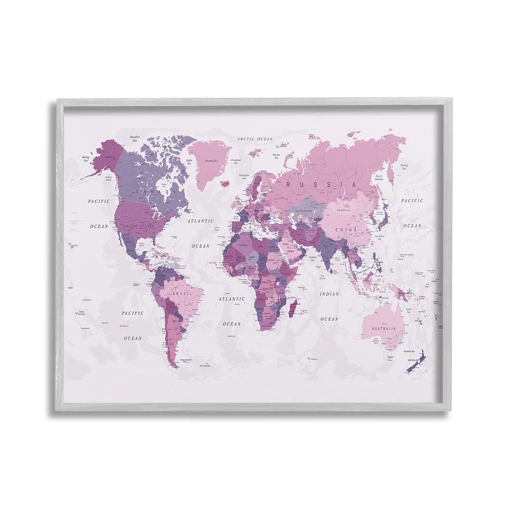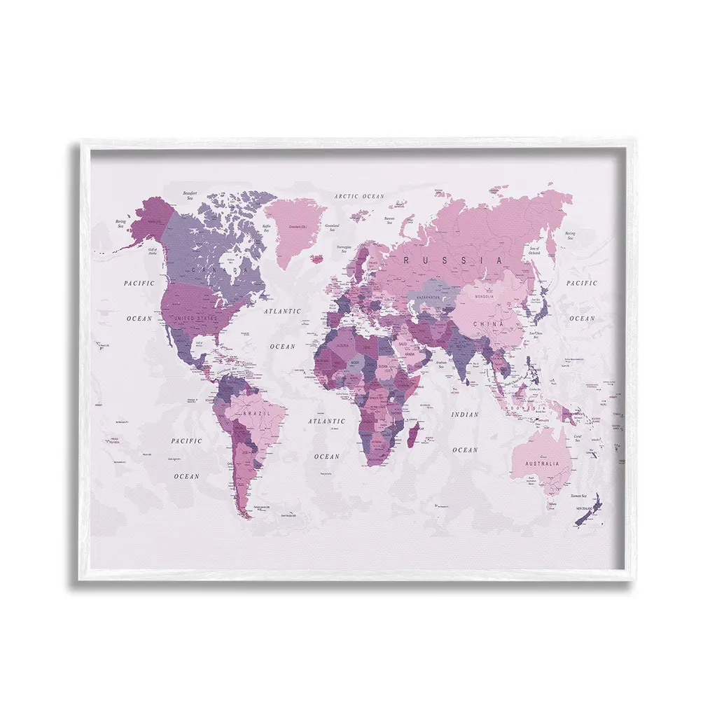 Add dimension to any room with our textured Framed Giclee Artwork. Our framed artwork is securely mounted into a 1.5-inch thick wood grain frame and ready to hang. Frames are available in three alluring styles: black, gray farmhouse and white. In addition, you should check out our oversized options if you want a statement piece. Stupell Wall Art is made in the USA.Features: Dimensions: 14 x 1.5 x 11 FramedFramed Giclee Products are available in the sizes 14"x11", 20"x16" or 30"x24". All Framed Giclee Products have a 1.5" Depth. Wall Art is Ready to Hang with Hardware Free Hanging. No installation required. For Easy Set Up Lean or Layer Artwork on Shelf or Against Wall.Our giclée prints are carefully mounted on a durable MDF backing, and then perfectly finished in a 1.5 inch thick woodgrain frame. Mounted frame colors include black, gray farmhouse and white. Made In USA.Artwork Relates To: Map, Atlas, Diagram, Educational, World Map, TraditionalDesign by Urban Epiphant