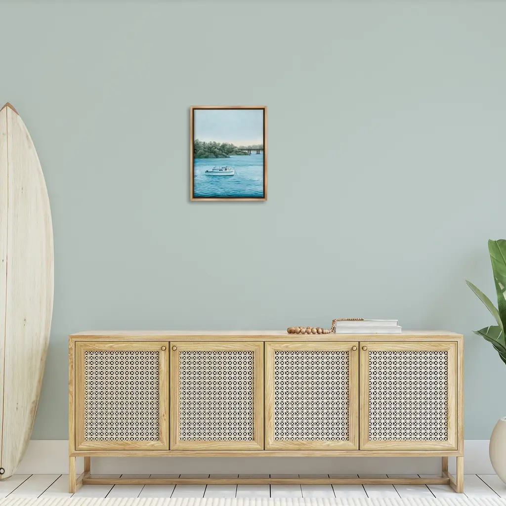 Elevate your home or office to the next level with Stupell Framed Floating Canvas Wall Art. Our premium hand-stretched canvas is mounted securely into a sturdy lightweight frame. The museum-style gap between the wrapped canvas and the box frame gives the illusion of floating artwork. Stupell Wall Art is made in the USA.Features: Dimensions: 17 x 1.7 x 21 Frame, 16 x 1.5 x 20 Canvas ArtFloating Frame Canvas Products are available in sizes 17"x21" and 25"x31". All Floating Frame Canvas Products have a 1.7" Depth.Wall Art is Ready to Hang with Hardware Free Hanging. No Installation required. For Easy Set Up Lean or Layer Artwork on Shelf or Against Wall. Artwork is Permently Fixed into the Frame.Our elevated 1.7" Thick Floating Frame is the perfect complement to our canvas style Wall Art. We use only the highest quality inks in house with industry leading printing solutions. Canvas is hand stretched over a durable wood foundation and then mounted securly into a Modern Box Frame. Made in the USA.Artwork Relates To: Boat, Sailboat, Scenery, Water, Watercraft, Sea, Lake, Boating, Waterfront, Sky, LandscapeDesign by Grace Popp