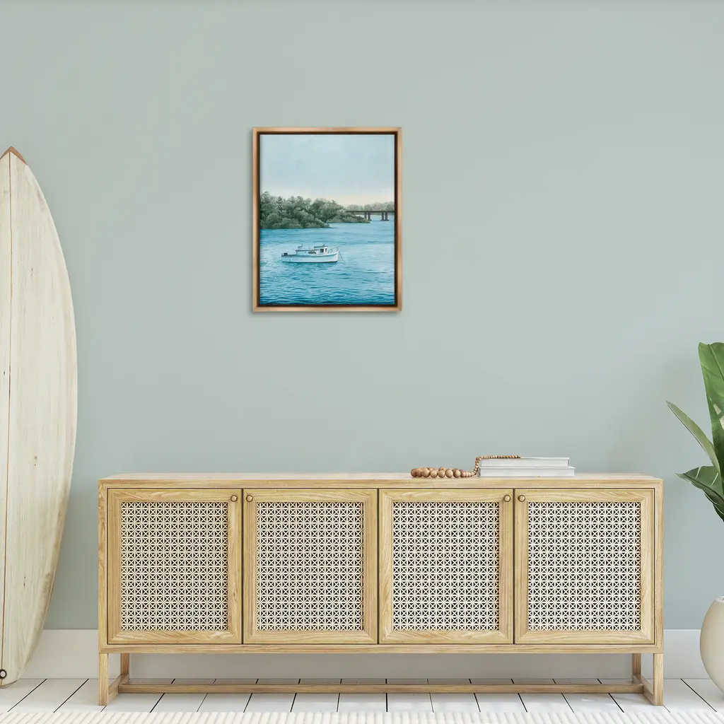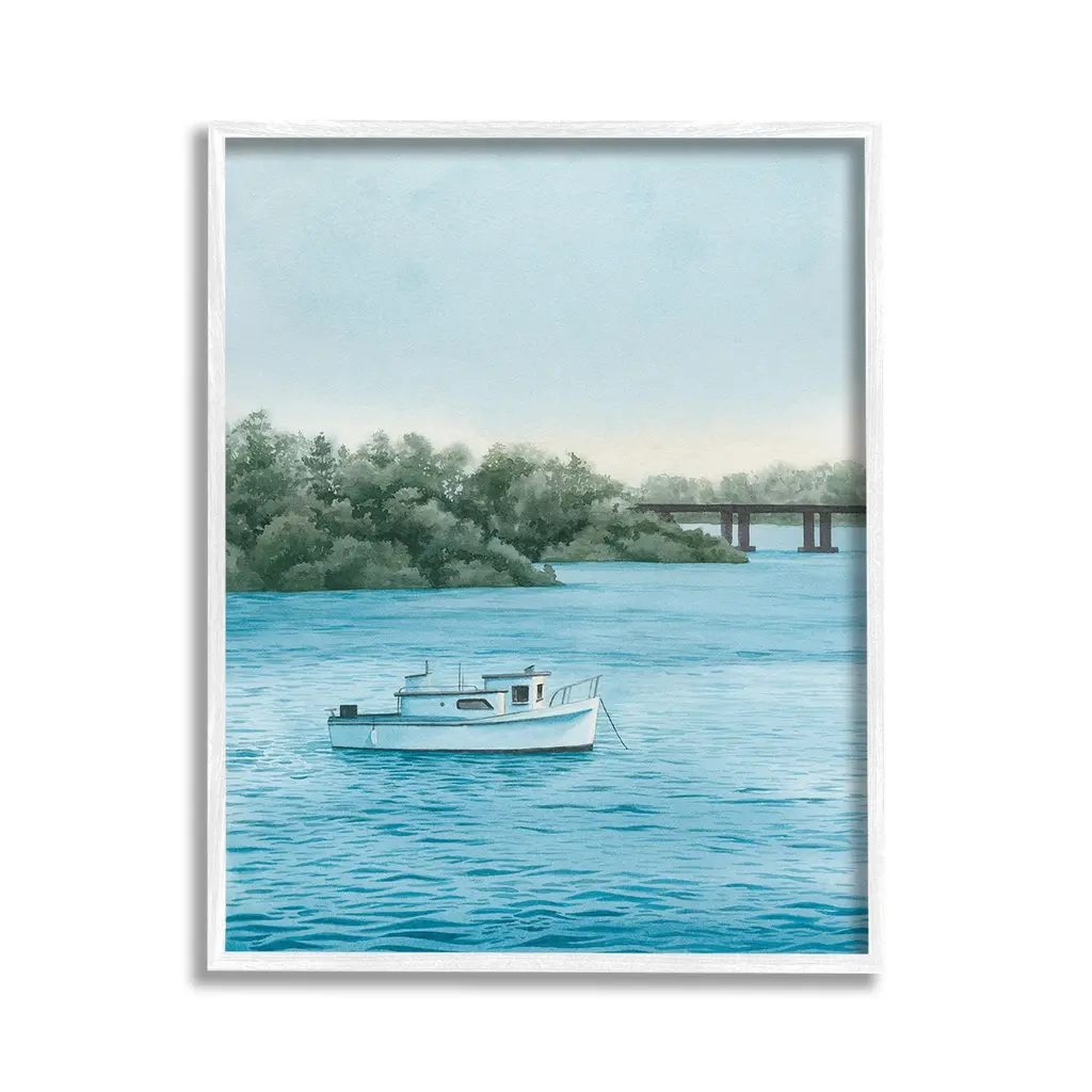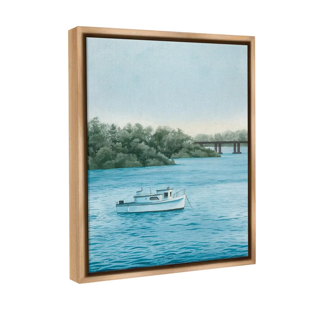 Elevate your home or office to the next level with Stupell Framed Floating Canvas Wall Art. Our premium hand-stretched canvas is mounted securely into a sturdy lightweight frame. The museum-style gap between the wrapped canvas and the box frame gives the illusion of floating artwork. Stupell Wall Art is made in the USA.Features: Dimensions: 17 x 1.7 x 21 Frame, 16 x 1.5 x 20 Canvas ArtFloating Frame Canvas Products are available in sizes 17"x21" and 25"x31". All Floating Frame Canvas Products have a 1.7" Depth.Wall Art is Ready to Hang with Hardware Free Hanging. No Installation required. For Easy Set Up Lean or Layer Artwork on Shelf or Against Wall. Artwork is Permently Fixed into the Frame.Our elevated 1.7" Thick Floating Frame is the perfect complement to our canvas style Wall Art. We use only the highest quality inks in house with industry leading printing solutions. Canvas is hand stretched over a durable wood foundation and then mounted securly into a Modern Box Frame. Made in the USA.Artwork Relates To: Boat, Sailboat, Scenery, Water, Watercraft, Sea, Lake, Boating, Waterfront, Sky, LandscapeDesign by Grace Popp