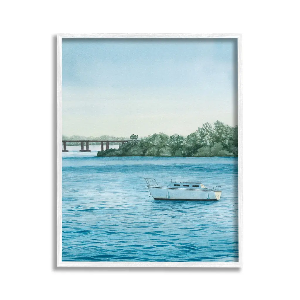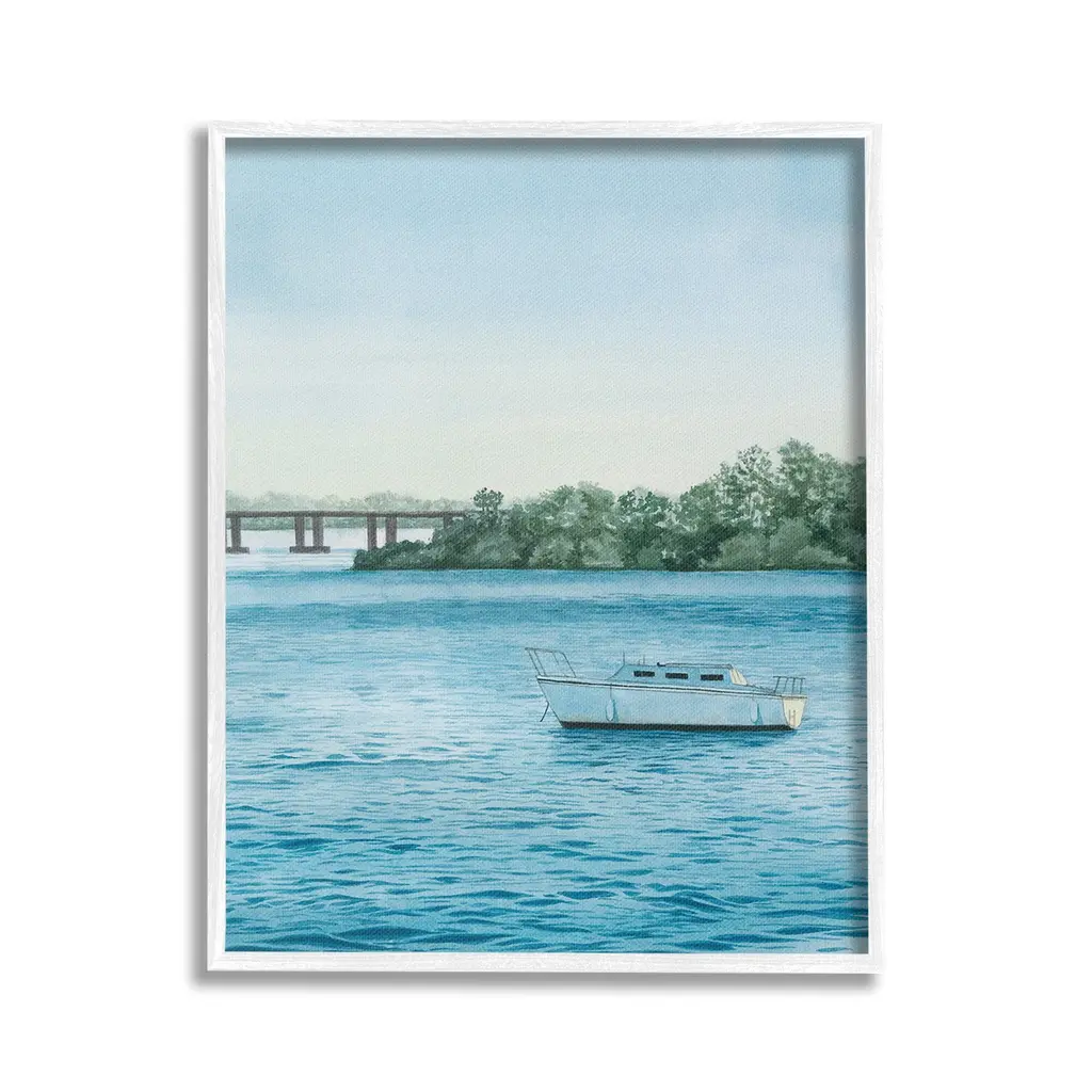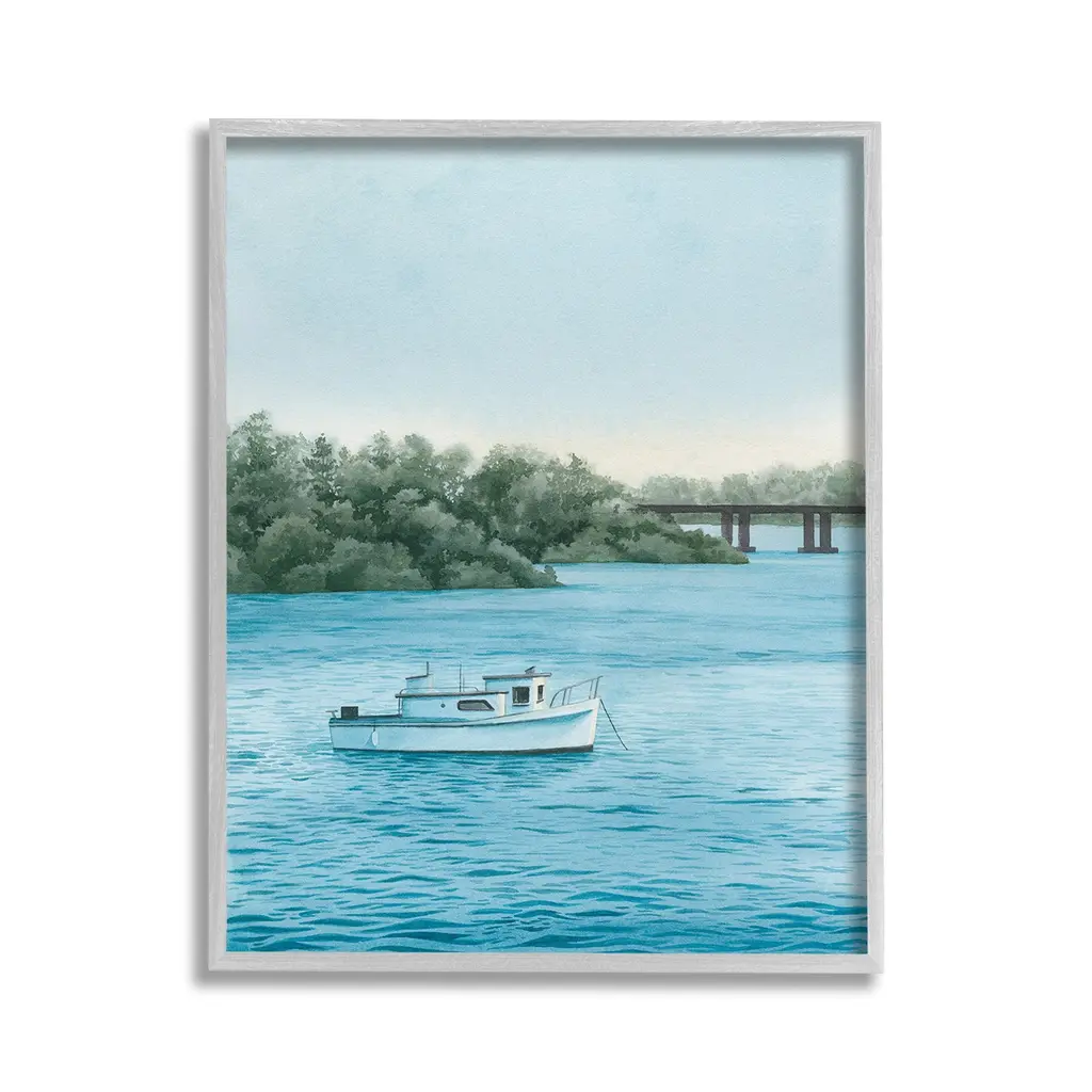 Add dimension to any room with our textured Framed Giclee Artwork. Our framed artwork is securely mounted into a 1.5-inch thick wood grain frame and ready to hang. Frames are available in three alluring styles: black, gray farmhouse and white. In addition, you should check out our oversized options if you want a statement piece. Stupell Wall Art is made in the USA.Features: Dimensions: 11 x 1.5 x 14 FramedFramed Giclee Products are available in the sizes 11"x14", 16"x20" or 24"x30". All Framed Giclee Products have a 1.5" Depth. Wall Art is Ready to Hang with Hardware Free Hanging. No installation required. For Easy Set Up Lean or Layer Artwork on Shelf or Against Wall.Our giclée prints are carefully mounted on a durable MDF backing, and then perfectly finished in a 1.5 inch thick woodgrain frame. Mounted frame colors include black, gray farmhouse and white. Made In USA.Artwork Relates To: Boat, Sailboat, Scenery, Water, Watercraft, Sea, Lake, Boating, Waterfront, Sky, LandscapeDesign by Grace Popp