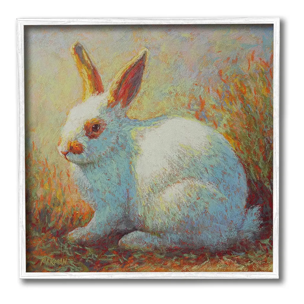 Add dimension to any room with our textured Framed Giclee Artwork. Our framed artwork is securely mounted into a 1.5-inch thick wood grain frame and ready to hang. Frames are available in three alluring styles: black, gray farmhouse and white. In addition, you should check out our oversized options if you want a statement piece. Stupell Wall Art is made in the USA.Features: Dimensions: 12 x 1.5 x 12 FramedFramed Giclee Product Sizes Include 12"x12", 17"x17", and 24"x24". Framed Giclee Products have a 1.5" Depth. Wall Art is Ready to Hang with Hardware Free Hanging. No installation required. For Easy Set Up Lean or Layer Artwork on Shelf or Against Wall.Our giclée prints are carefully mounted on a durable MDF backing, and then perfectly finished in a 1.5 inch thick woodgrain frame. Mounted frame colors include black, gray farmhouse and white. Made In USA.Artwork Relates To: Painting, Animal, Mammal, Rabbit, Bunny, Abstract, Traditional, Nature, PointillismDesign by Rita Kirkman
