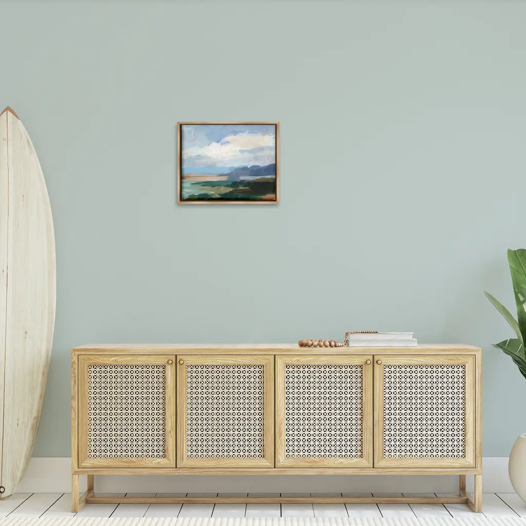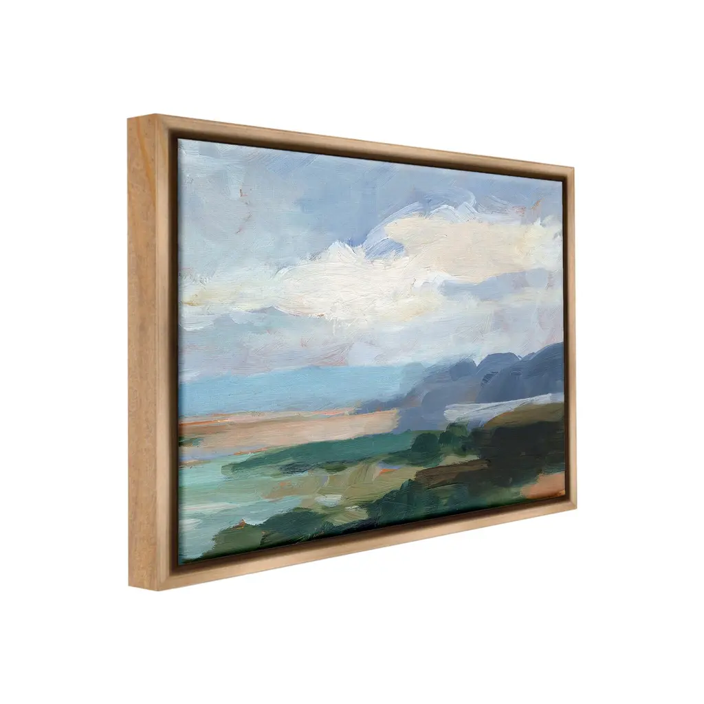 Elevate your home or office to the next level with Stupell Framed Floating Canvas Wall Art. Our premium hand-stretched canvas is mounted securely into a sturdy lightweight frame. The museum-style gap between the wrapped canvas and the box frame gives the illusion of floating artwork. Stupell Wall Art is made in the USA.Features: Dimensions: 21 x 1.7 x 17 Frame, 20 x 1.5 x 16 Canvas ArtFloating Frame Canvas Products are available in sizes 21"x17" and 31"x25". All Floating Frame Canvas Products have a 1.7" Depth.Wall Art is Ready to Hang with Hardware Free Hanging. No Installation required. For Easy Set Up Lean or Layer Artwork on Shelf or Against Wall. Artwork is Permently Fixed into the Frame.Our elevated 1.7" Thick Floating Frame is the perfect complement to our canvas style Wall Art. We use only the highest quality inks in house with industry leading printing solutions. Canvas is hand stretched over a durable wood foundation and then mounted securly into a Modern Box Frame. Made in the USA.Artwork Relates To: Painting, Nature, Water, Abstract, Landscape, Modern, Traditional, Beach, Cloud, ShoreDesign by Ethan Harper