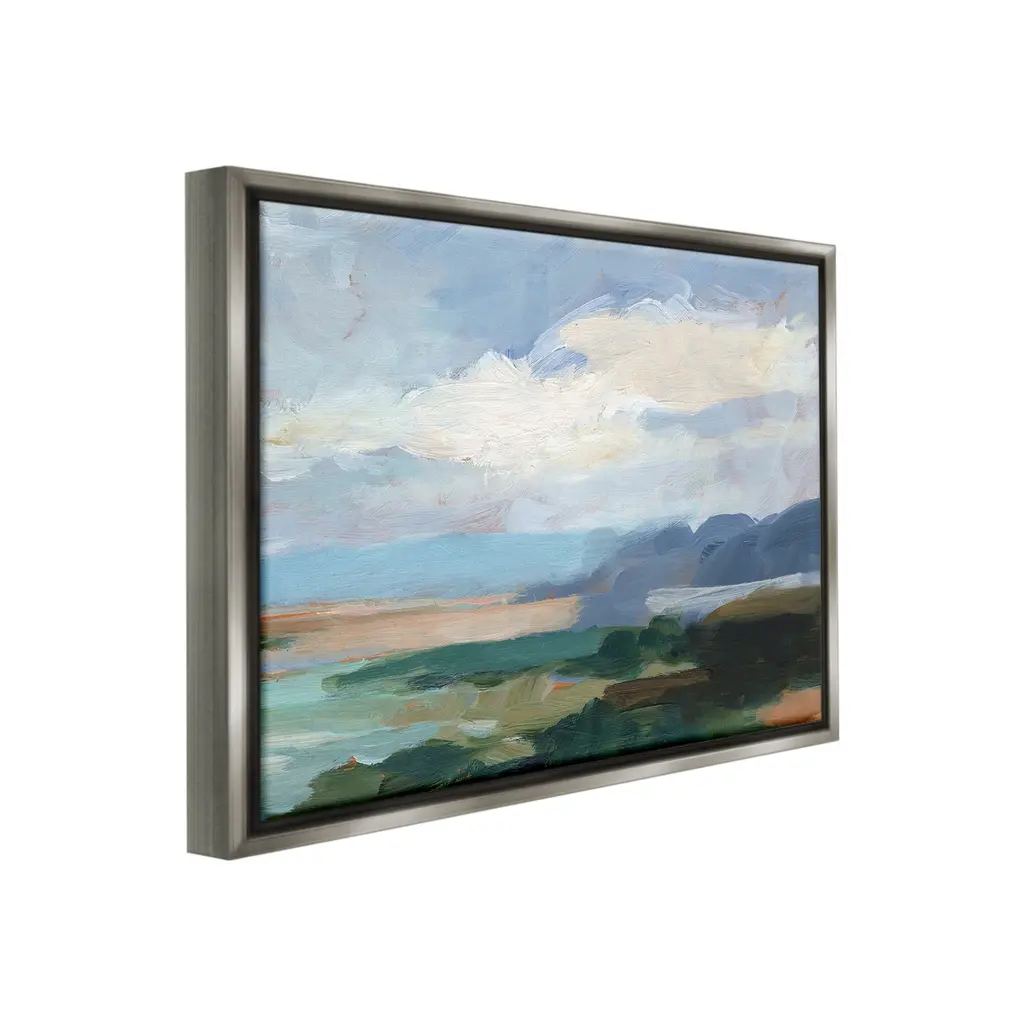 Elevate your home or office to the next level with Stupell Framed Floating Canvas Wall Art. Our premium hand-stretched canvas is mounted securely into a sturdy lightweight frame. The museum-style gap between the wrapped canvas and the box frame gives the illusion of floating artwork. Stupell Wall Art is made in the USA.Features: Dimensions: 21 x 1.7 x 17 Frame, 20 x 1.5 x 16 Canvas ArtFloating Frame Canvas Products are available in sizes 21"x17" and 31"x25". All Floating Frame Canvas Products have a 1.7" Depth.Wall Art is Ready to Hang with Hardware Free Hanging. No Installation required. For Easy Set Up Lean or Layer Artwork on Shelf or Against Wall. Artwork is Permently Fixed into the Frame.Our elevated 1.7" Thick Floating Frame is the perfect complement to our canvas style Wall Art. We use only the highest quality inks in house with industry leading printing solutions. Canvas is hand stretched over a durable wood foundation and then mounted securly into a Modern Box Frame. Made in the USA.Artwork Relates To: Painting, Nature, Water, Abstract, Landscape, Modern, Traditional, Beach, Cloud, ShoreDesign by Ethan Harper