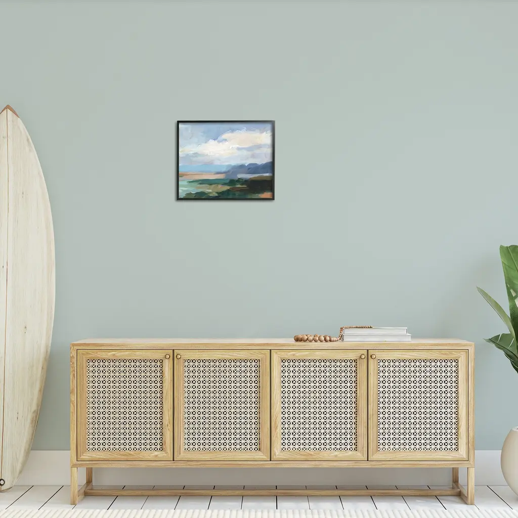 Add dimension to any room with our textured Framed Giclee Artwork. Our framed artwork is securely mounted into a 1.5-inch thick wood grain frame and ready to hang. Frames are available in three alluring styles: black, gray farmhouse and white. In addition, you should check out our oversized options if you want a statement piece. Stupell Wall Art is made in the USA.Features: Dimensions: 14 x 1.5 x 11 FramedFramed Giclee Products are available in the sizes 14"x11", 20"x16" or 30"x24". All Framed Giclee Products have a 1.5" Depth. Wall Art is Ready to Hang with Hardware Free Hanging. No installation required. For Easy Set Up Lean or Layer Artwork on Shelf or Against Wall.Our giclée prints are carefully mounted on a durable MDF backing, and then perfectly finished in a 1.5 inch thick woodgrain frame. Mounted frame colors include black, gray farmhouse and white. Made In USA.Artwork Relates To: Painting, Nature, Water, Abstract, Landscape, Modern, Traditional, Beach, Cloud, ShoreDesign by Ethan Harper