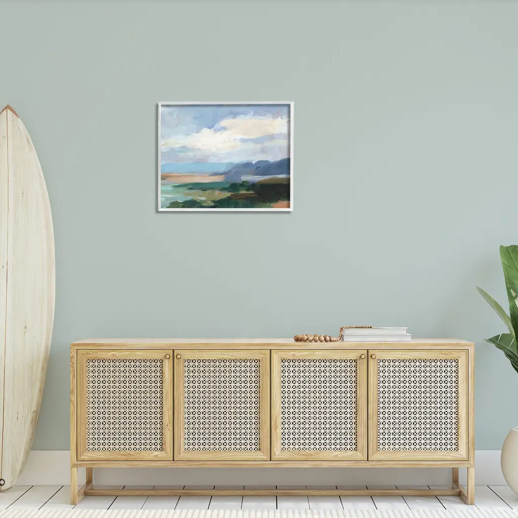 Add dimension to any room with our textured Framed Giclee Artwork. Our framed artwork is securely mounted into a 1.5-inch thick wood grain frame and ready to hang. Frames are available in three alluring styles: black, gray farmhouse and white. In addition, you should check out our oversized options if you want a statement piece. Stupell Wall Art is made in the USA.Features: Dimensions: 14 x 1.5 x 11 FramedFramed Giclee Products are available in the sizes 14"x11", 20"x16" or 30"x24". All Framed Giclee Products have a 1.5" Depth. Wall Art is Ready to Hang with Hardware Free Hanging. No installation required. For Easy Set Up Lean or Layer Artwork on Shelf or Against Wall.Our giclée prints are carefully mounted on a durable MDF backing, and then perfectly finished in a 1.5 inch thick woodgrain frame. Mounted frame colors include black, gray farmhouse and white. Made In USA.Artwork Relates To: Painting, Nature, Water, Abstract, Landscape, Modern, Traditional, Beach, Cloud, ShoreDesign by Ethan Harper