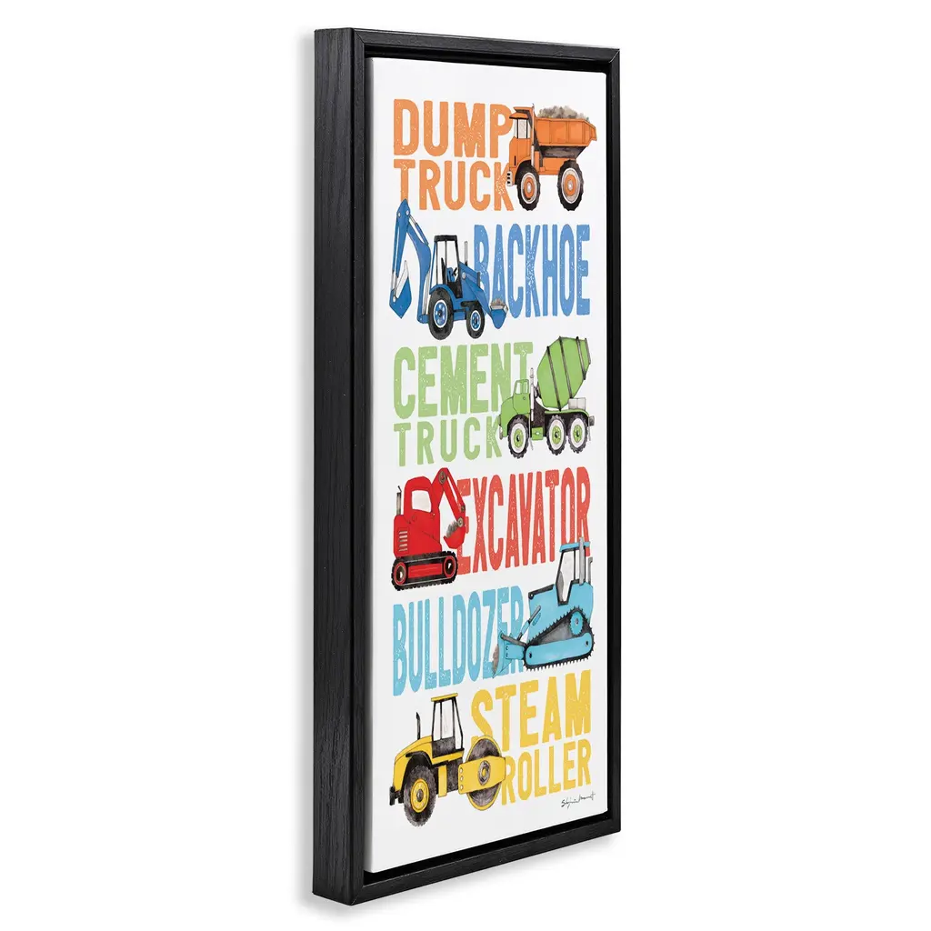 Elevate your home or office to the next level with Stupell Framed Floating Canvas Wall Art. Our premium hand-stretched canvas is mounted securely into a sturdy lightweight frame. The museum-style gap between the wrapped canvas and the box frame gives the illusion of floating artwork. Stupell Wall Art is made in the USA.Features: Dimensions: 11 x 1.7 x 25 Frame, 10 x 1.5 x 24 Canvas ArtFloating Frame Canvas Products are available in sizes 11"x25" and 14"x31". All Floating Frame Canvas Products have a 1.7" Depth.Wall Art is Ready to Hang with Hardware Free Hanging. No Installation required. For Easy Set Up Lean or Layer Artwork on Shelf or Against Wall. Artwork is Permently Fixed into the Frame.Our elevated 1.7" Thick Floating Frame is the perfect complement to our canvas style Wall Art. We use only the highest quality inks in house with industry leading printing solutions. Canvas is hand stretched over a durable wood foundation and then mounted securly into a Modern Box Frame. Made in the USA.Artwork Relates To: Construction, Truck, Educational, KidsDesign by Stephanie Workman Marrott