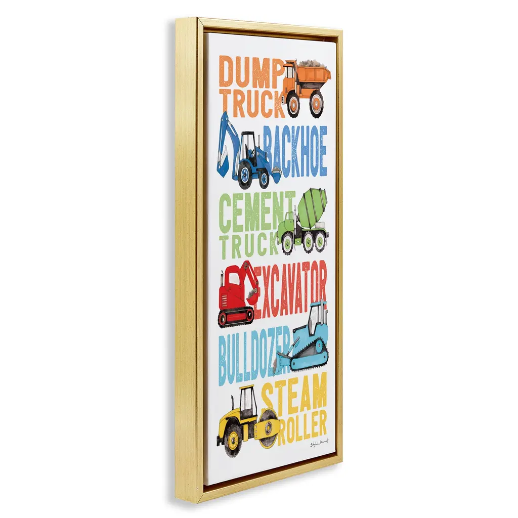 Elevate your home or office to the next level with Stupell Framed Floating Canvas Wall Art. Our premium hand-stretched canvas is mounted securely into a sturdy lightweight frame. The museum-style gap between the wrapped canvas and the box frame gives the illusion of floating artwork. Stupell Wall Art is made in the USA.Features: Dimensions: 11 x 1.7 x 25 Frame, 10 x 1.5 x 24 Canvas ArtFloating Frame Canvas Products are available in sizes 11"x25" and 14"x31". All Floating Frame Canvas Products have a 1.7" Depth.Wall Art is Ready to Hang with Hardware Free Hanging. No Installation required. For Easy Set Up Lean or Layer Artwork on Shelf or Against Wall. Artwork is Permently Fixed into the Frame.Our elevated 1.7" Thick Floating Frame is the perfect complement to our canvas style Wall Art. We use only the highest quality inks in house with industry leading printing solutions. Canvas is hand stretched over a durable wood foundation and then mounted securly into a Modern Box Frame. Made in the USA.Artwork Relates To: Construction, Truck, Educational, KidsDesign by Stephanie Workman Marrott