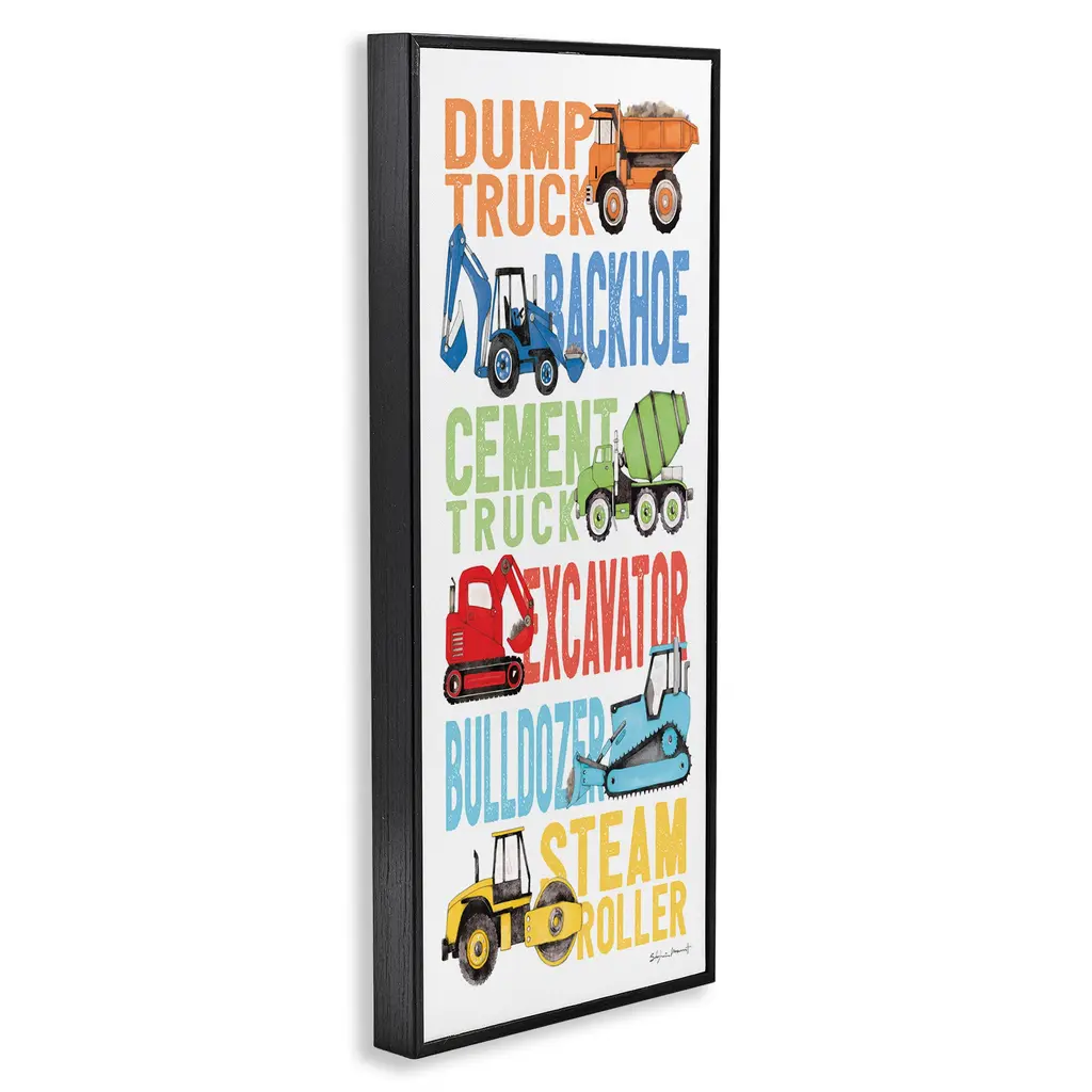 Add dimension to any room with our textured Framed Giclee Artwork. Our framed artwork is securely mounted into a 1.5-inch thick wood grain frame and ready to hang. Frames are available in three alluring styles: black, gray farmhouse and white. In addition, you should check out our oversized options if you want a statement piece. Stupell Wall Art is made in the USA.Features: Dimensions: 10 x 1.5 x 24 FramedFramed Giclee Product Sizes include 10"x24" and 13"x30". All Framed Giclee products have a 1.5" Depth.Wall Art is Ready to Hang with Hardware Free Hanging. No installation required. For Easy Set Up Lean or Layer Artwork on Shelf or Against Wall.Our giclée prints are carefully mounted on a durable MDF backing, and then perfectly finished in a 1.5 inch thick woodgrain frame. Mounted frame colors include black, gray farmhouse and white. Made In USA.Artwork Relates To: Construction, Truck, Educational, KidsDesign by Stephanie Workman Marrott