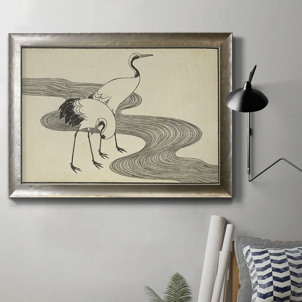 Stupell Traditional Crane By Lake Japanese Inspired Bird Canvas Wall Art - Grey - 17 X 40